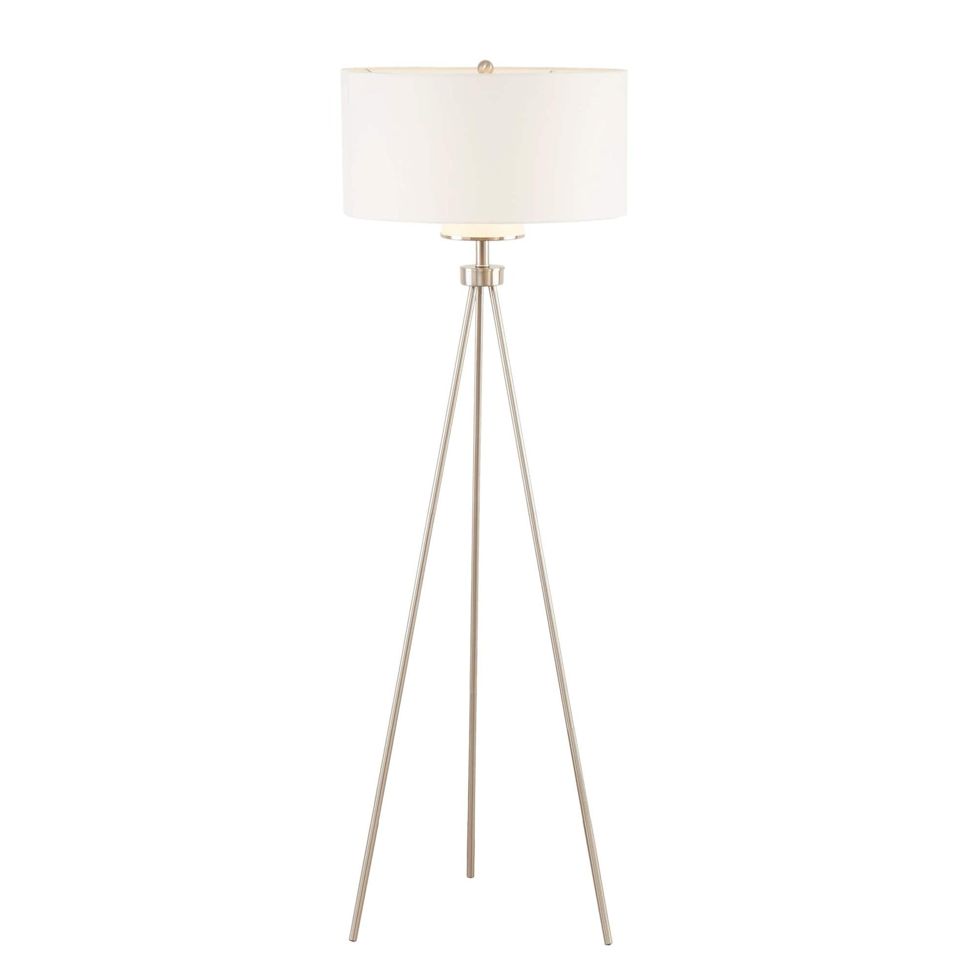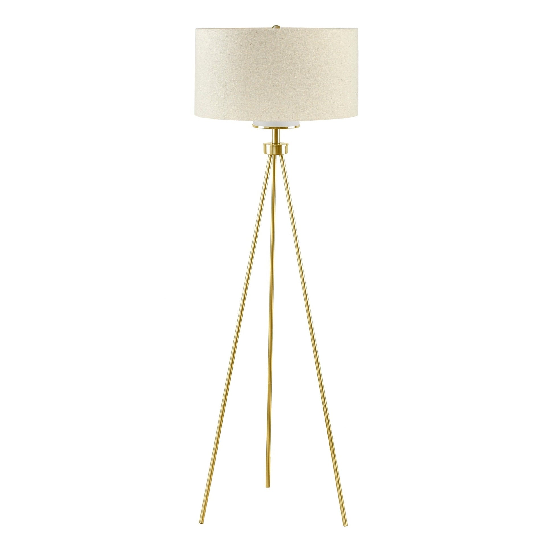 This tripod floor lamp by INK+IVY is the perfect update of urban sophistication to any room. A metal base is featured in a gold or silver finish, completed with a light grey/ cream linen fabric shade for a simple update.