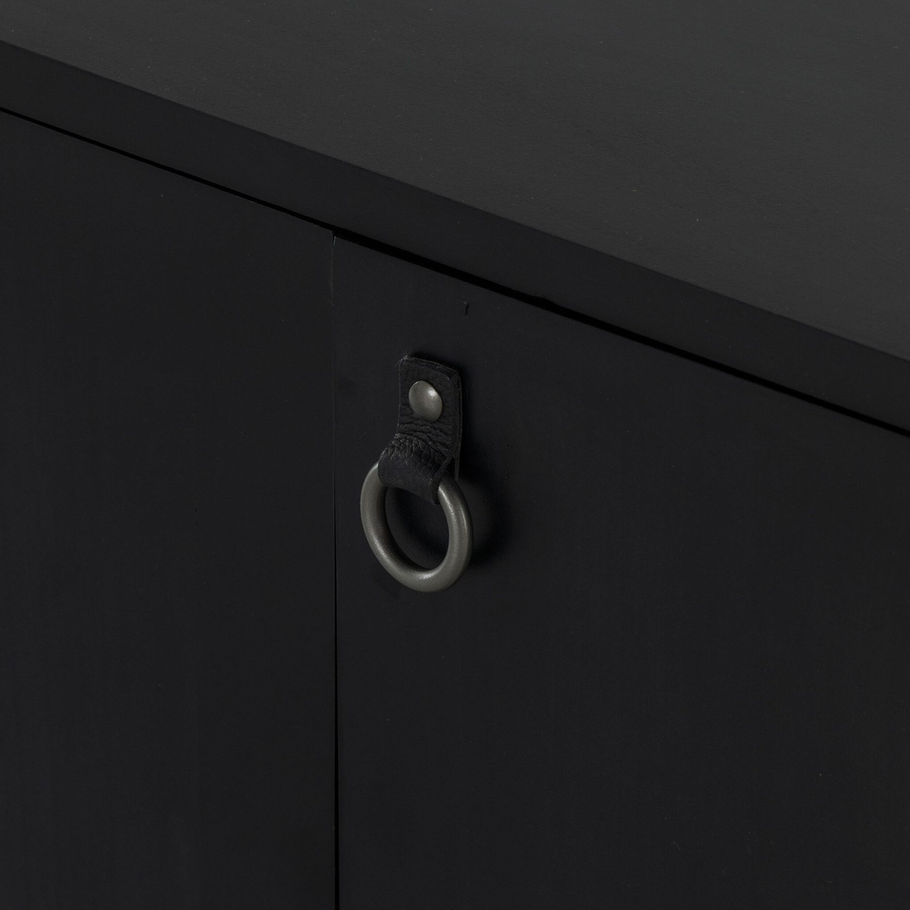 The Isabella Media Console offers a beautiful and minimalistic design, crafted from black-washed dry poplar and accented with iron and leather hardware. Inspired by Shaker styling, it features faux dovetail joinery and rear cutouts for easy cord management. Perfect for a modern and functional entertainment space.