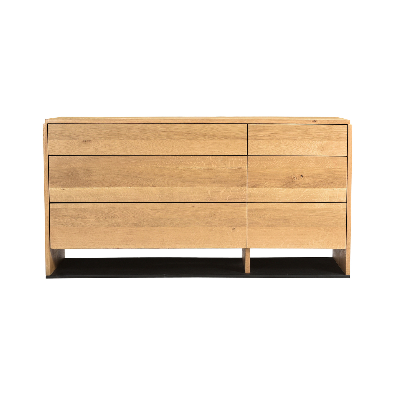 A natural storage solution, Ivy is at home in any décor. This solid oak chest of drawers is generously fitted with 6 roomy mango wood drawers, 3 large and 3 small. Supported by a sleek iron sheet base, Ivy is all clean lines for a seamless, contemporary finish. A handy storage essential, try mix and matching with the different sizes available for the perfect bedroom collection.