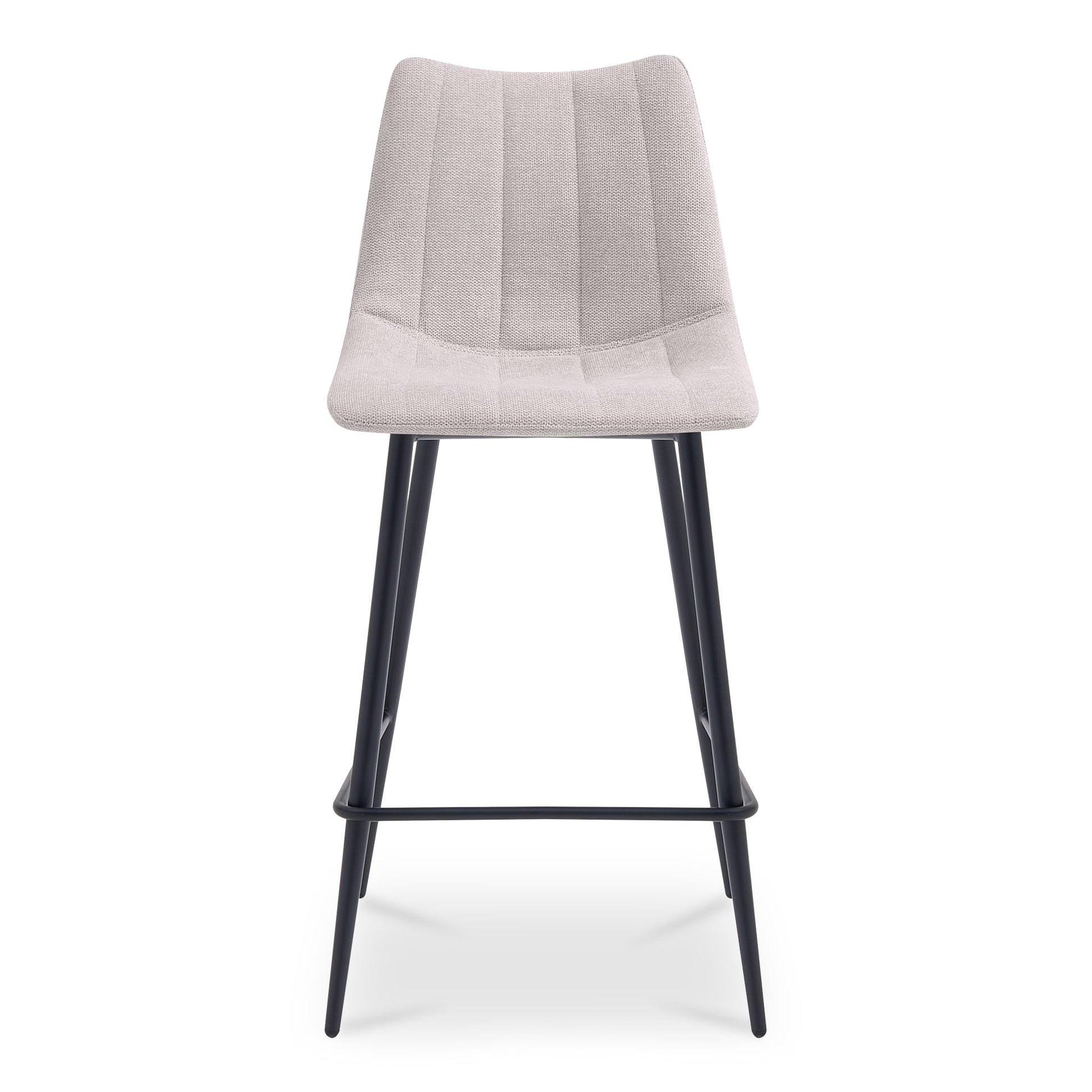 The Izzy counter stool set introduces a refined modern look with a sleek silhouette. Its design is enhanced by bold vertical stitch detailing that subtly punctuates the monochromatic seat. Upholstered in a durable, easy-care performance fabric, the contoured seat ensures comfortable seating, making it ideal for extended use at kitchen islands or bar counters.
