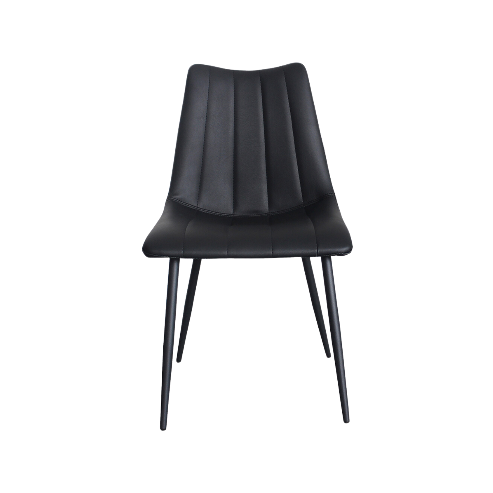 A new take on contemporary dining. The Izzy dining chair’s sleek modern aesthetic features striking vertical accent stitching, adding subtle detail to its simple and elegant design. An easy-to-clean soft vegan leather seat is perfectly shaped for comfort, so guests and hosts alike can relax after the dessert is served.