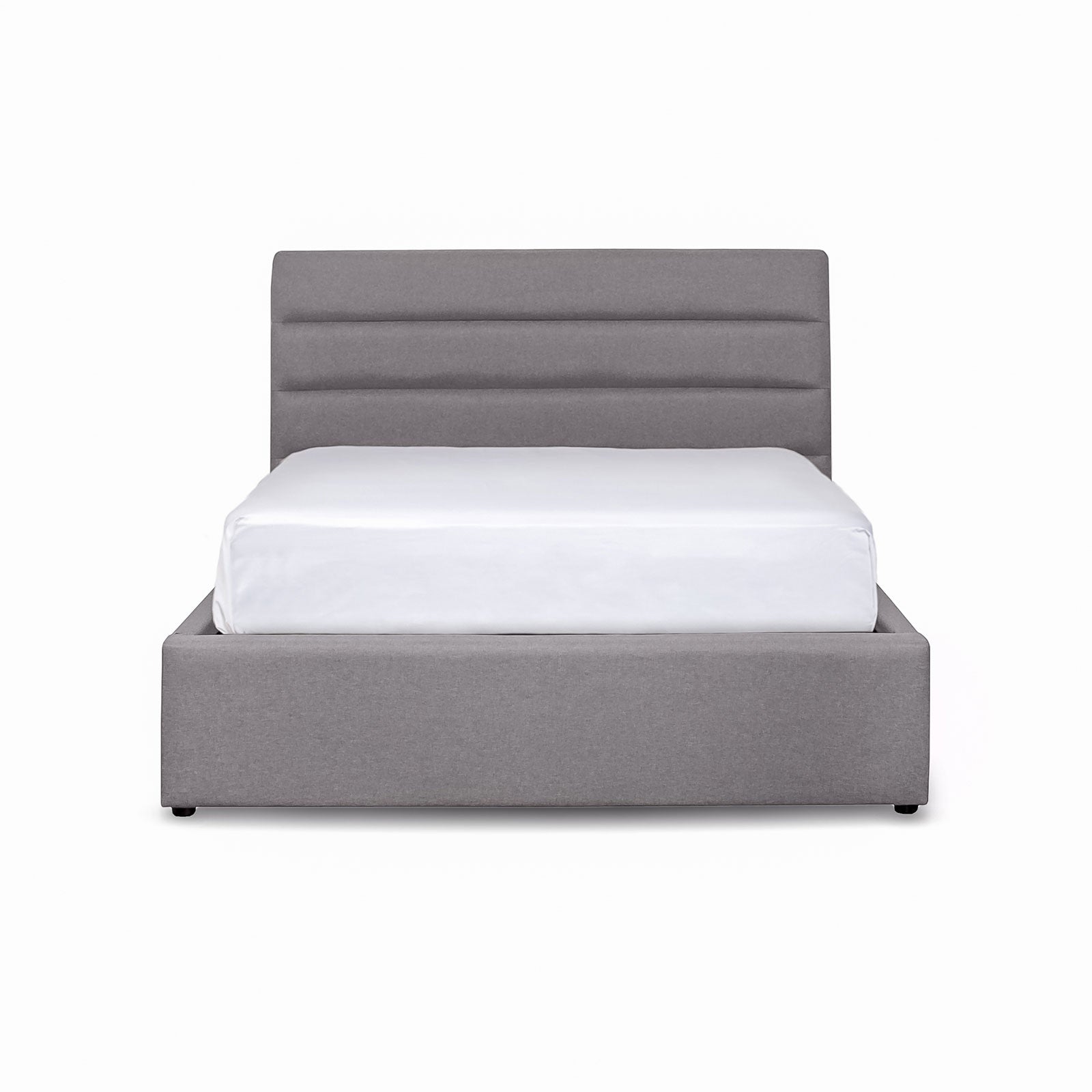 We’ve got the perfect condo-size, low profile design and line-sewn tufted headboard, but its made a bit taller with one extra panel. Perfect for smaller spaces and anywhere a stylish bed is needed. Features cream upholstery and espresso legs.