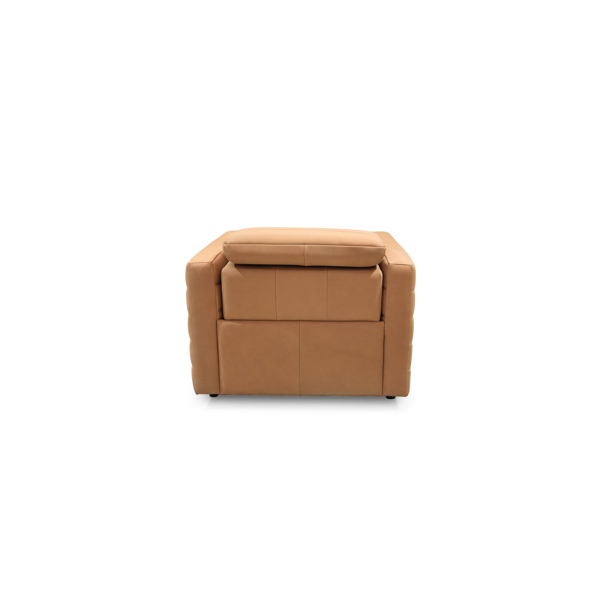 Wrapped in top-grain leather, the Jenson power recliner chair's sleek silhouette and horizontal channel detailing exude modern elegance. Hidden buttons effortlessly transition between positions, while the adjustable headrest offers personalized support.