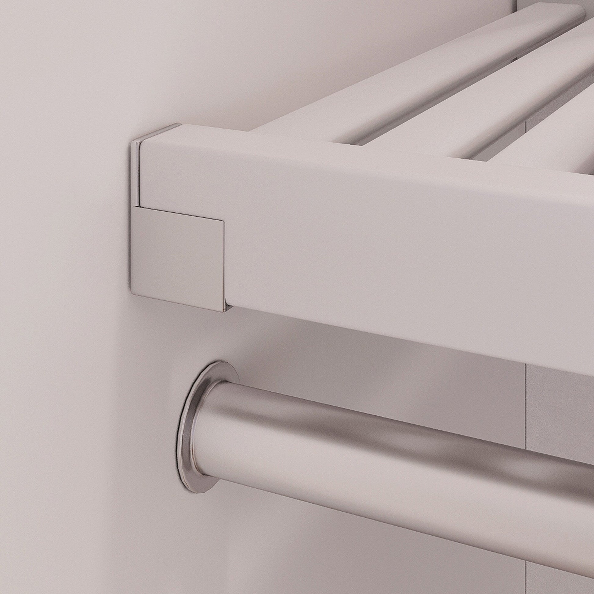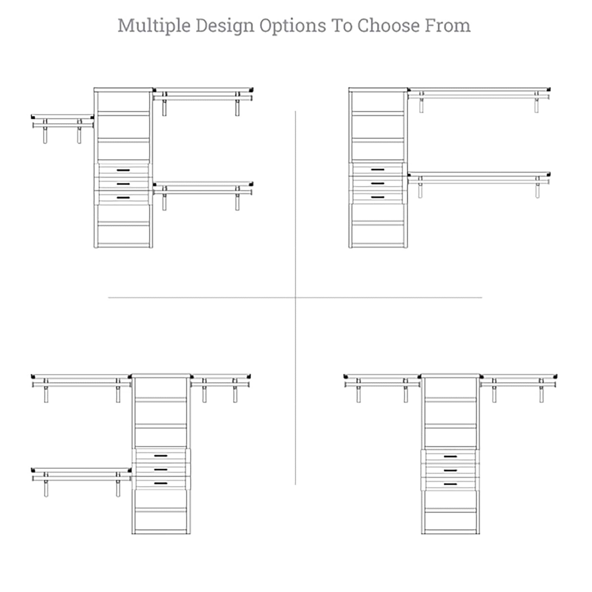 Organize your closet with the John Louis Home Premier Closet Organizer in white. Made of 100% solid wood with a 12 inch shelf depth, this organizer includes 3 Shaker style drawers and a 6ft. accessory tower with metal garment bars for ample storage space. With up to 22ft. of shelf space and 14ft. of hang space, you can easily store your clothes, linens, and accessories. Its adjustable setup options provide sturdy support for all your belongings.