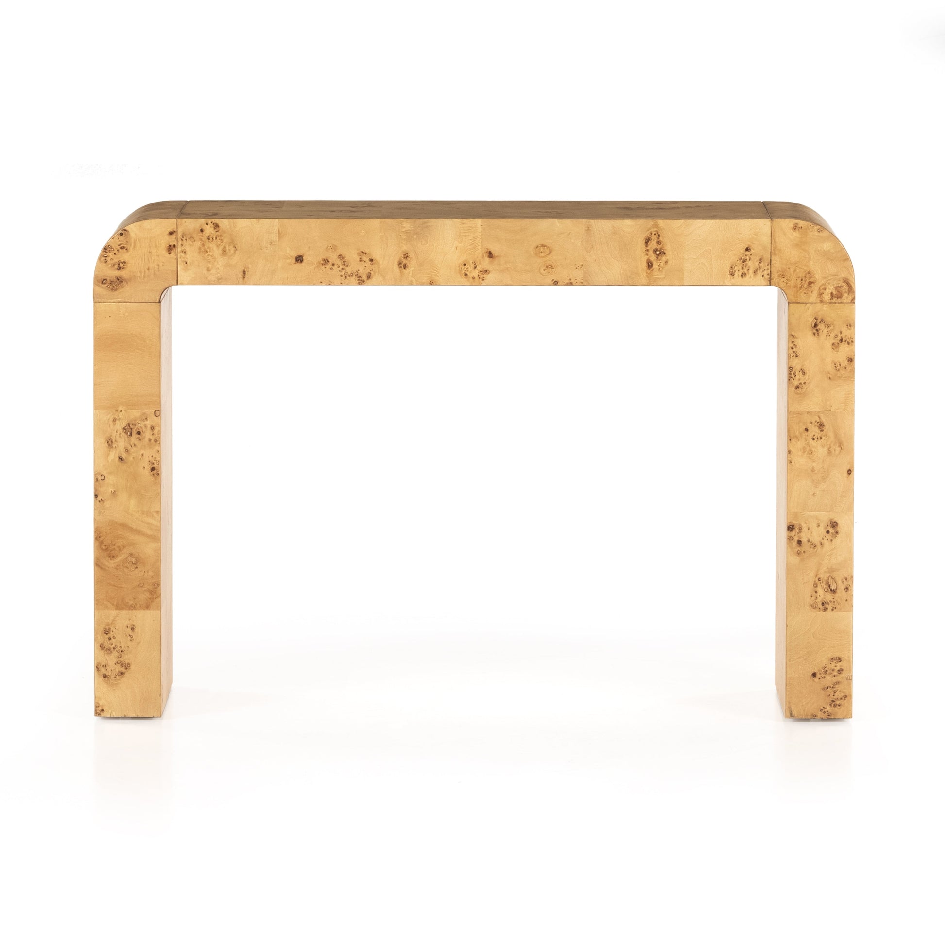 A statement worthy console table finished in an eye catching poplar burl wood veneer.