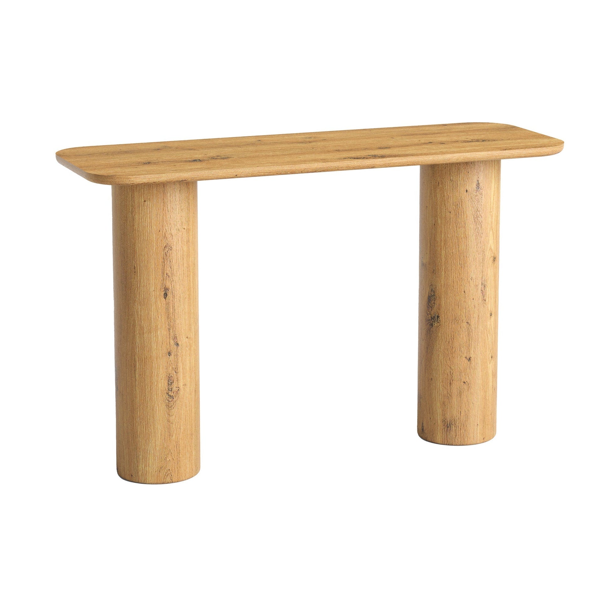 Crafted from solid oak and oak veneer, the Juno Console showcases a natural wood finish that highlights its authentic grain. Its simple design is enhanced by rounded legs and edges, offering both elegance and safety. This console combines durability with understated style, making it a versatile addition to any space.
