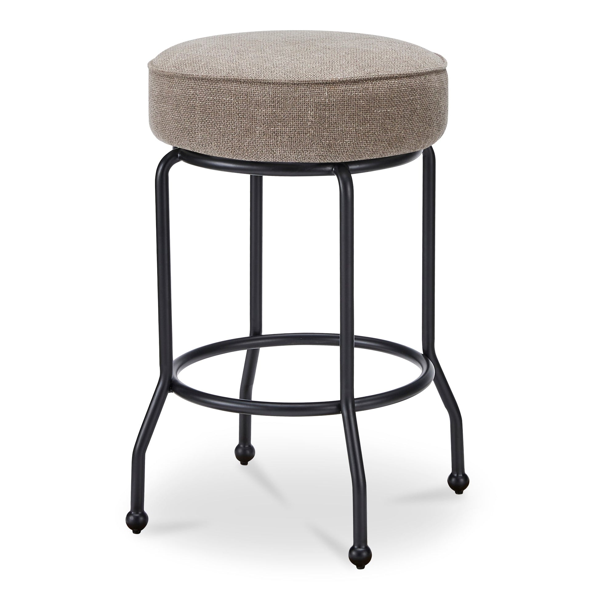 The Keva swivel counter stool features refined piping accents and upholstery in performance fabric that is simple to maintain. Its generously cushioned round seat encourages extended gatherings, while curved iron legs highlighted with delicate finials lend understated elegance. The 360-degree swivel mechanism ensures smooth, effortless rotation.