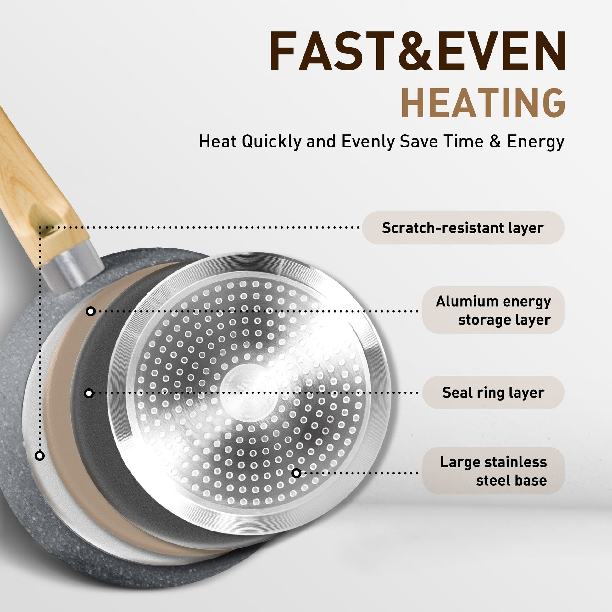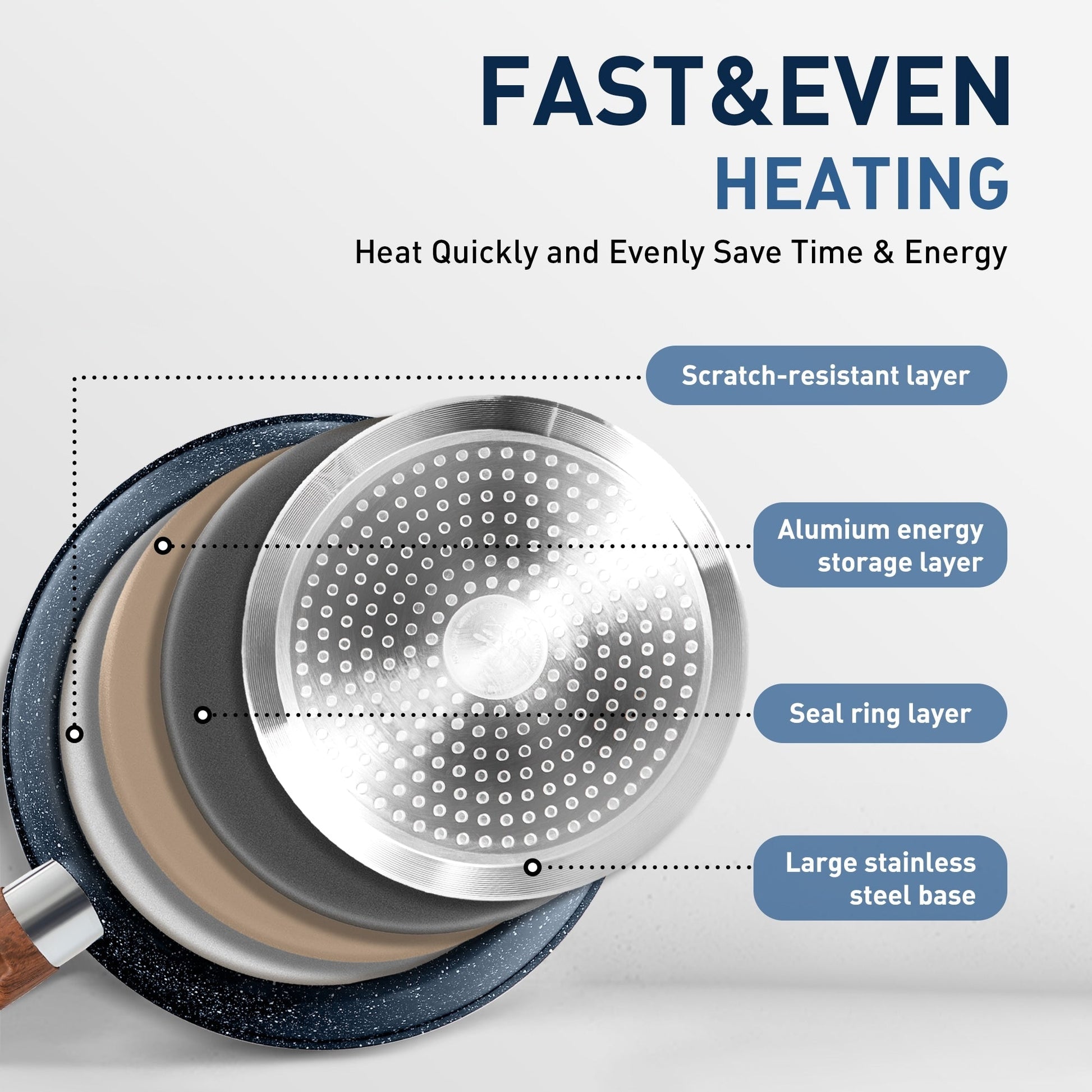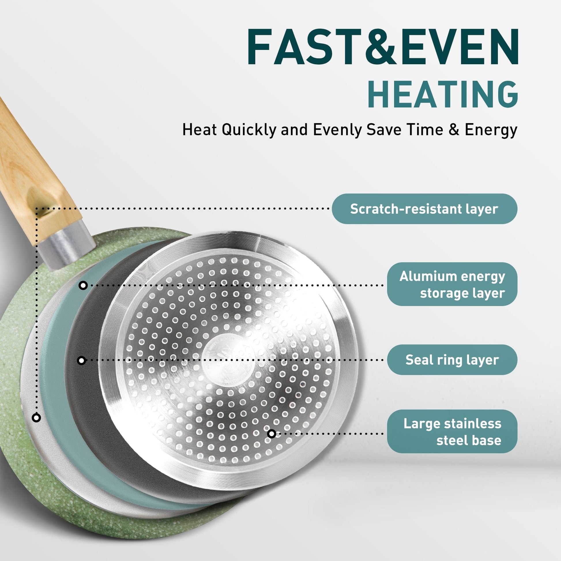 - Forged aluminum bottom with high heat conductivity for even surface heating