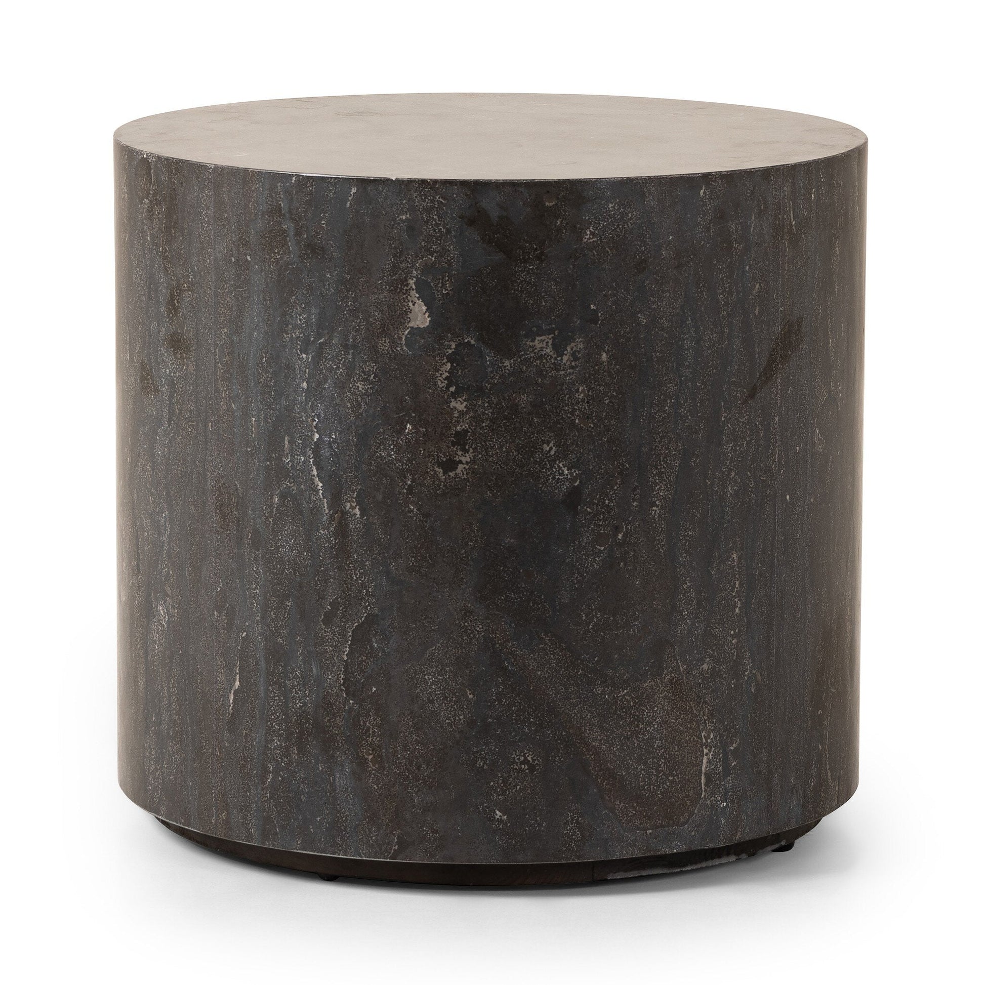 This round end table adds a touch of nature to your living room with its cylindrical shape. Crafted from polished bluestone for a natural aesthetic.
