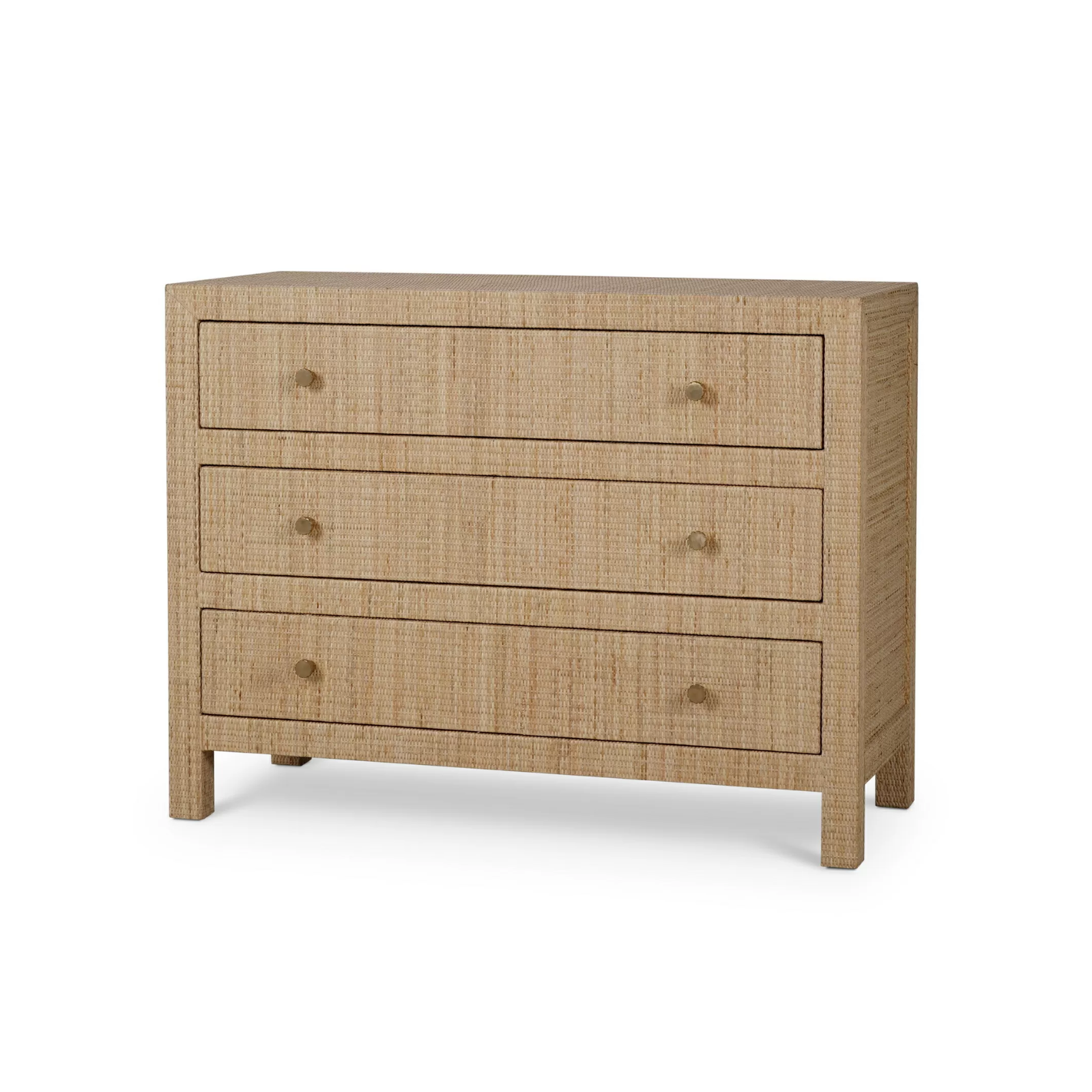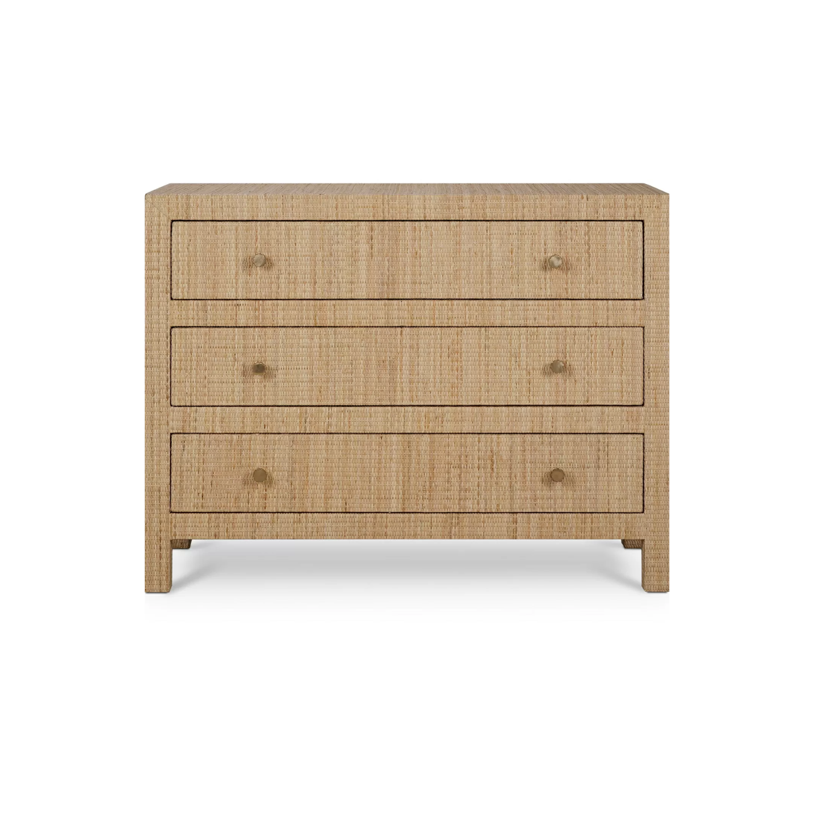 The Kylie 3 Drawer Dresser offers a relaxed and versatile look that compliments any style of decor. Crafted with stunning rattan, this dresser adds a touch of elegance and functionality to your styled bedroom.