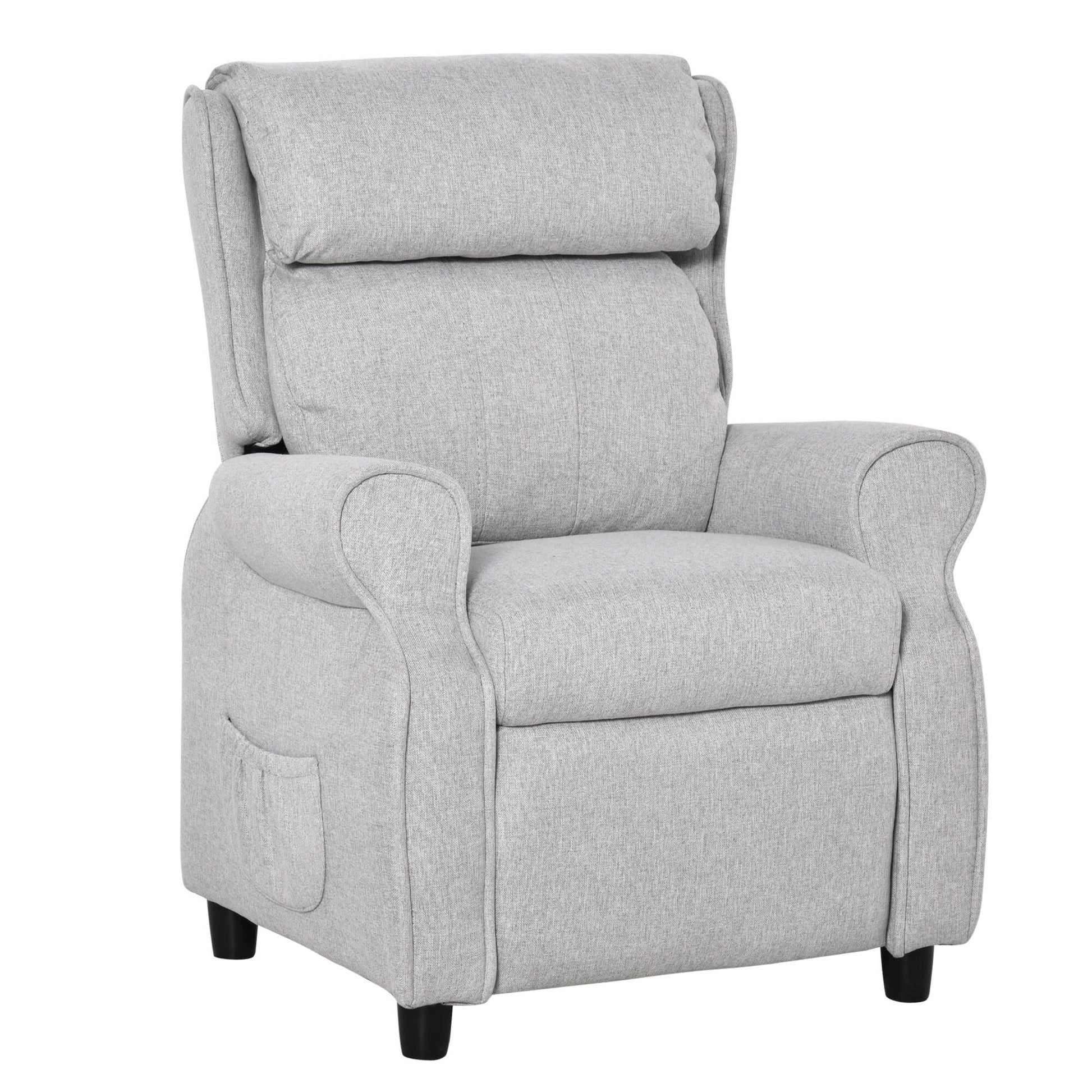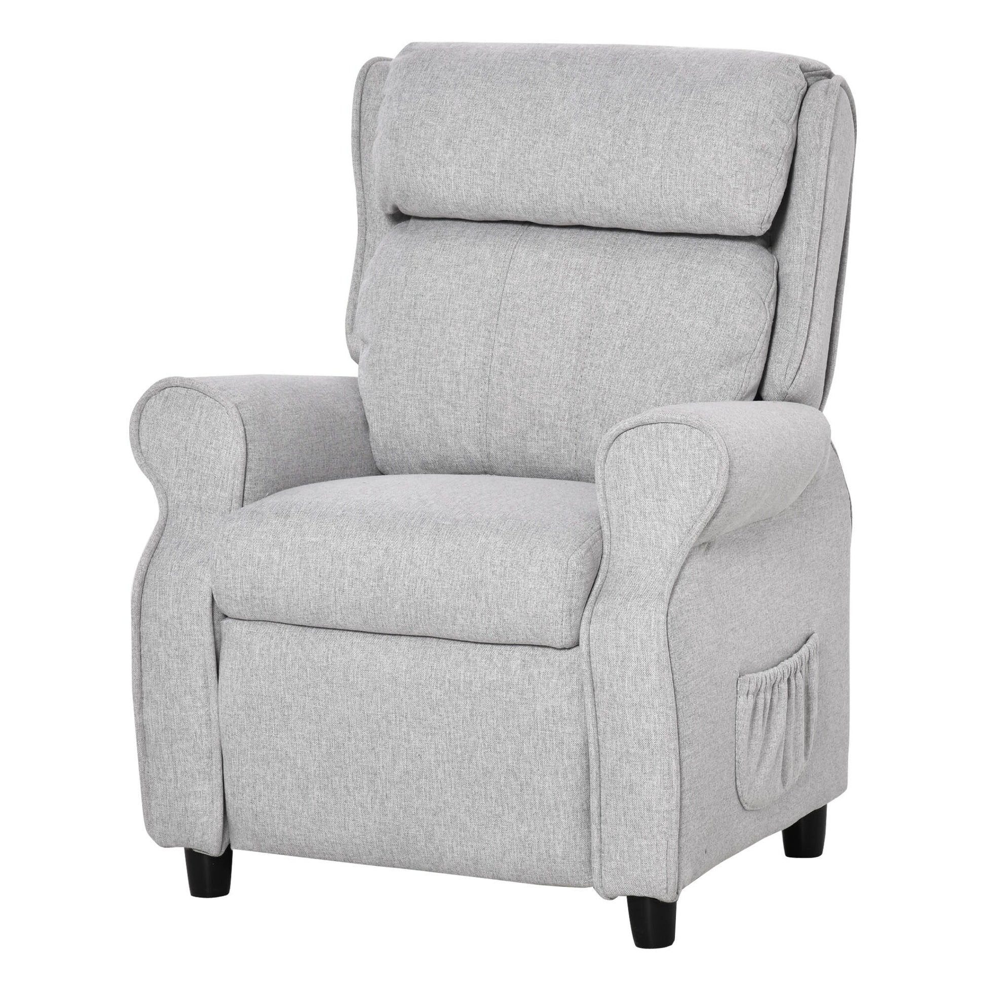 Light Grey Kids Children Upholstered Manual Recliner for 3-5 Years with Footrest and 2 Side Pockets
