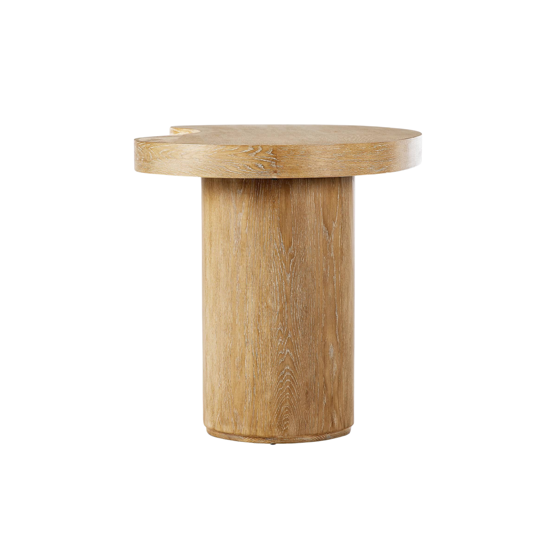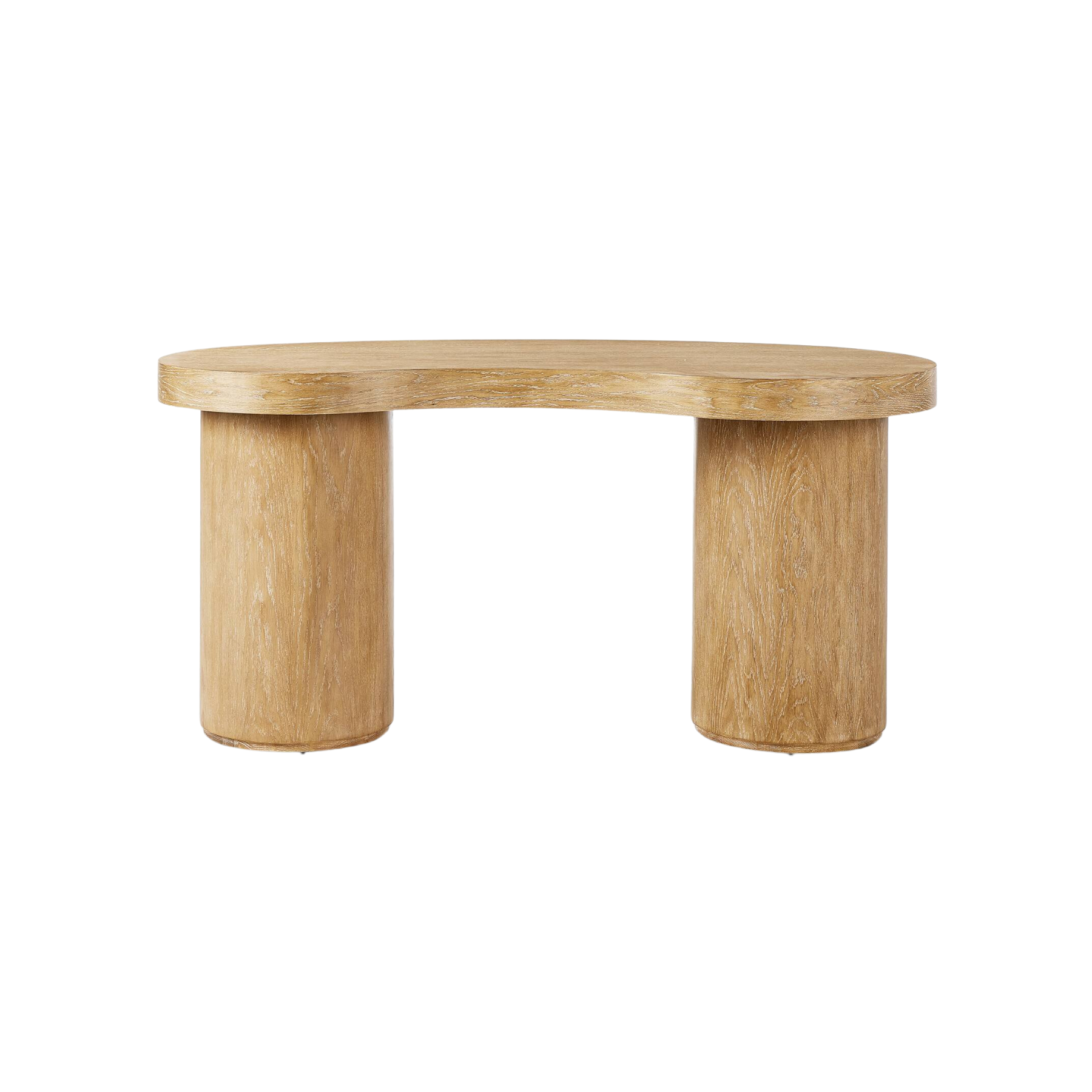 The Linnea Desk seamlessly blends form and function with its light blonde oak veneer and substantial cylindrical legs. This kidney-shaped desk not only adds an elegant touch to any space but also provides sturdy support for all your work needs. Elevate your workspace with the Linnea Desk.