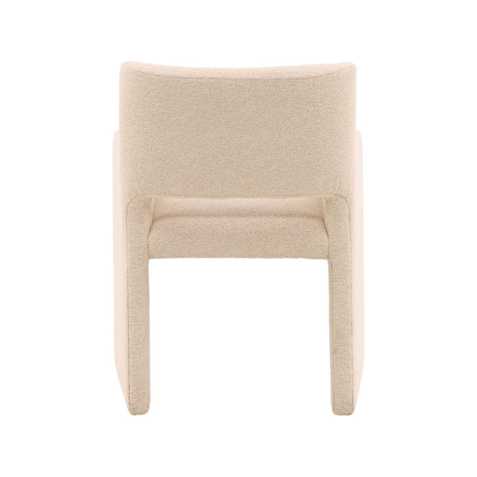 Upgrade your dining experience with the Lorin Dining Chair. Its gorgeous sand colour and elevated silhouette add a contemporary touch to any space. Made from 100% recycled materials, it's also eco-friendly. The curved design provides comfort and support.