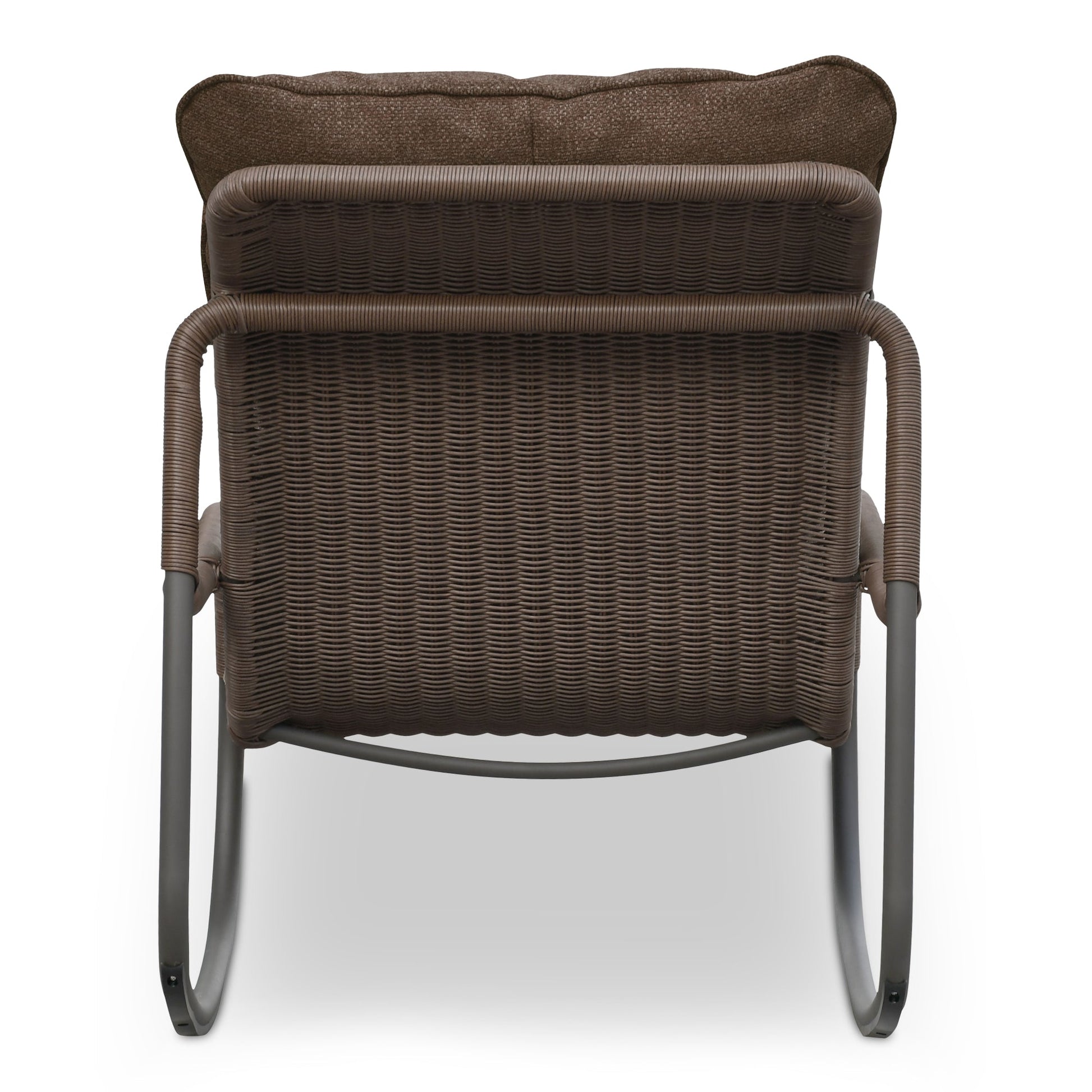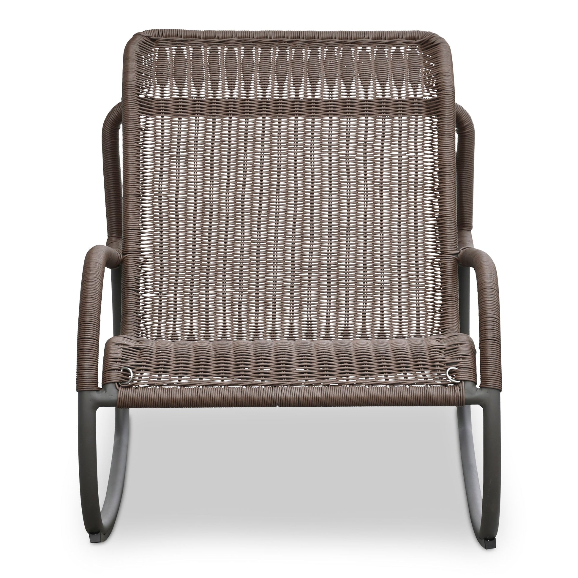 The Lyrik outdoor rocking chair features a streamlined aluminum frame paired with synthetic wicker, delivering a subtle touch of luxury. Its plush cushion conforms comfortably to the body, promoting relaxation, while removing the cushion reveals intricately woven seating for a minimalist option.