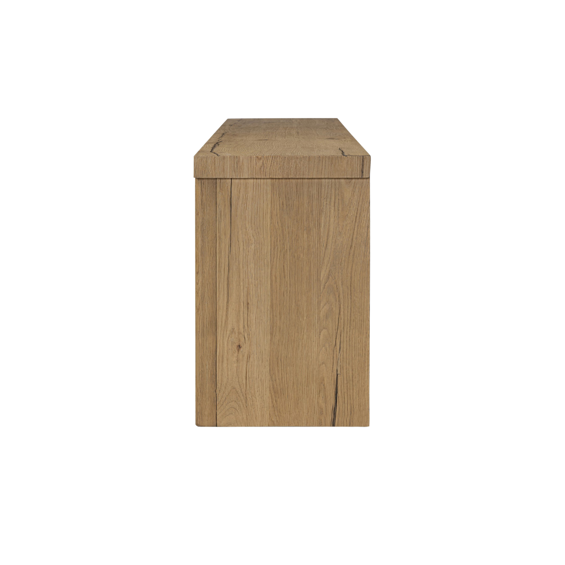 Indulge in the charm of old-world European elegance with our Lysander Media Console. Crafted with oak and featuring cracks and weathering for a character-rich look. The sliding doors open to reveal ample storage for media, while rear cutouts keep cords hidden. Transform your living space with this sophisticated and functional piece.