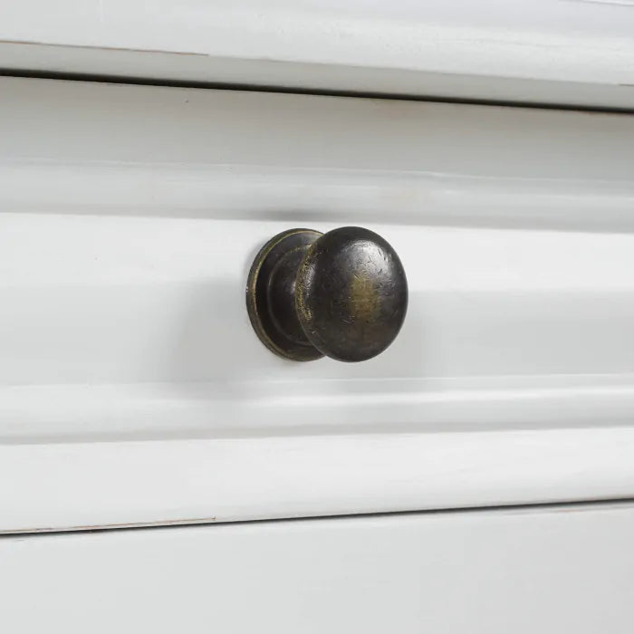 Expand display and storage space while adding a quaint décor element to a vintage-inspired space. Built from solid mahogany, the Madeline Side Table provides drawer storage as well as display space on two open shelves. This piece is offered with a vast array of finish and distress options to create a truly custom design.