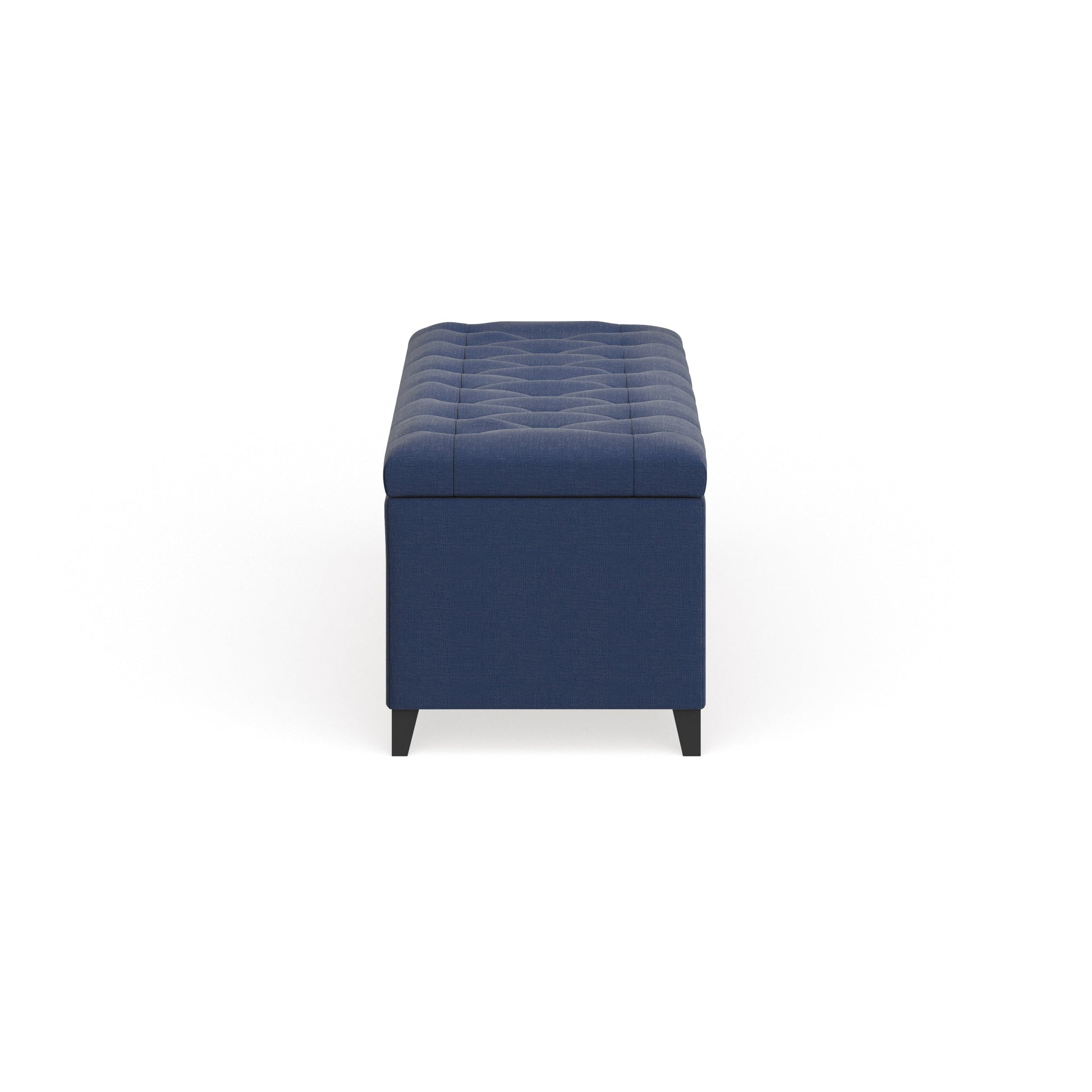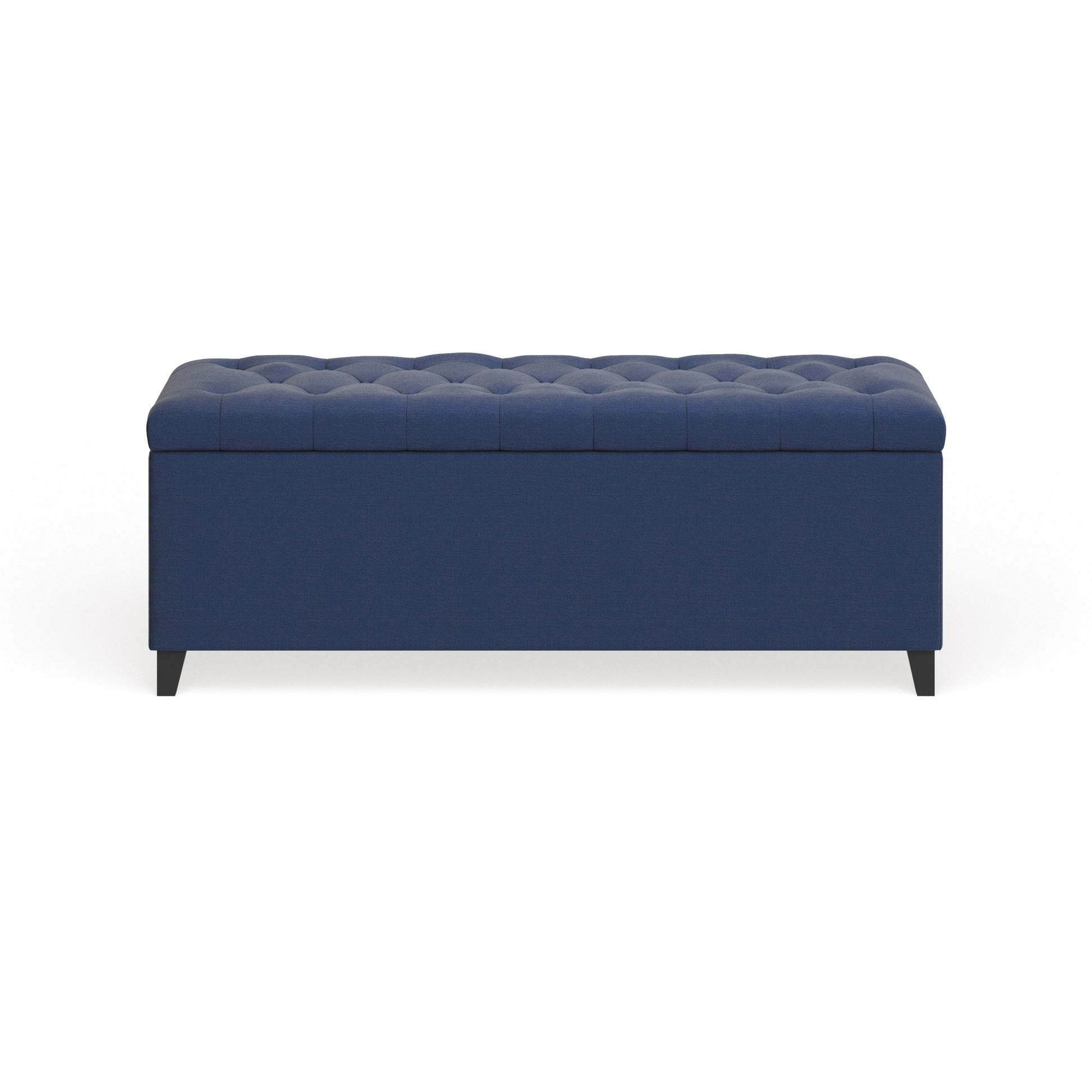 - Fully upholstered storage bench with tufted button seat