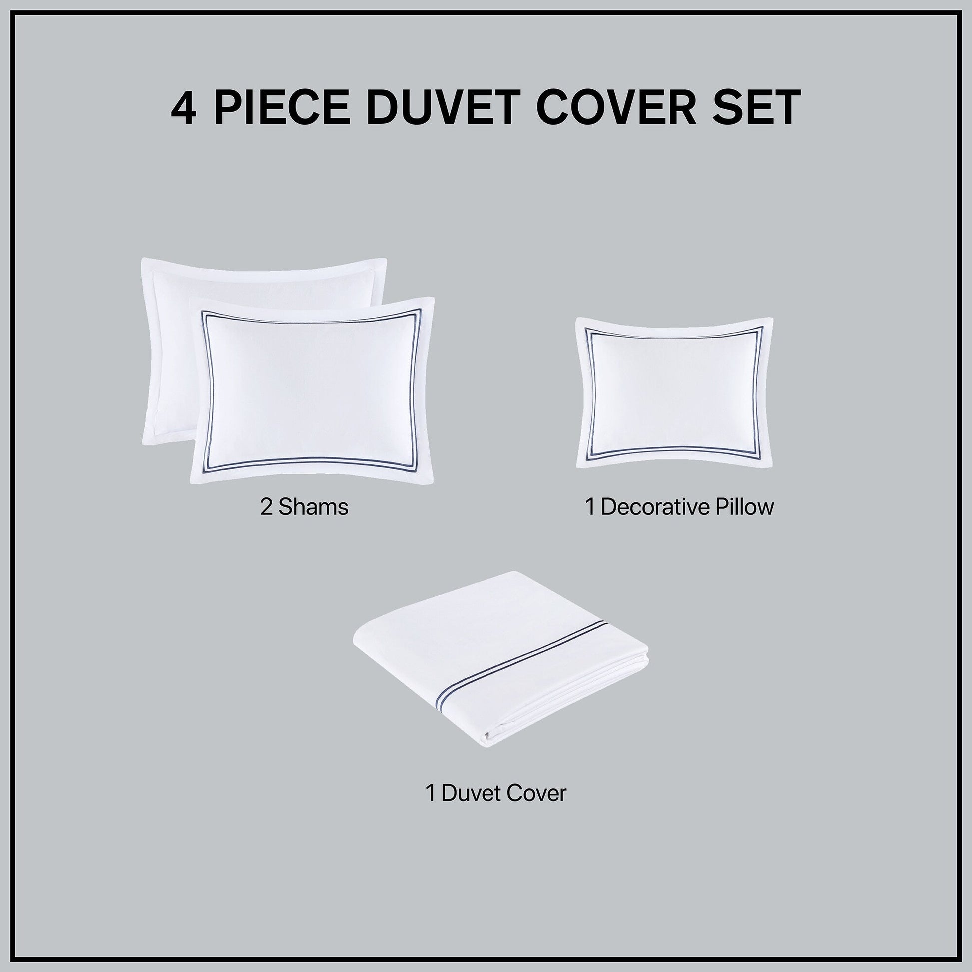Make every night feel like a luxurious hotel escape with this 500 Thread Count duvet cover set. Made of soft cotton, this refined 4 piece set features a double-row striped embroidered border for an elegant finish. The duvet cover is removable and has corner ties with a zipper closure for easy care. This set is also OEKO-TEX certified, meaning it does not contain any harmful substances or chemicals to ensure quality comfort and wellness.