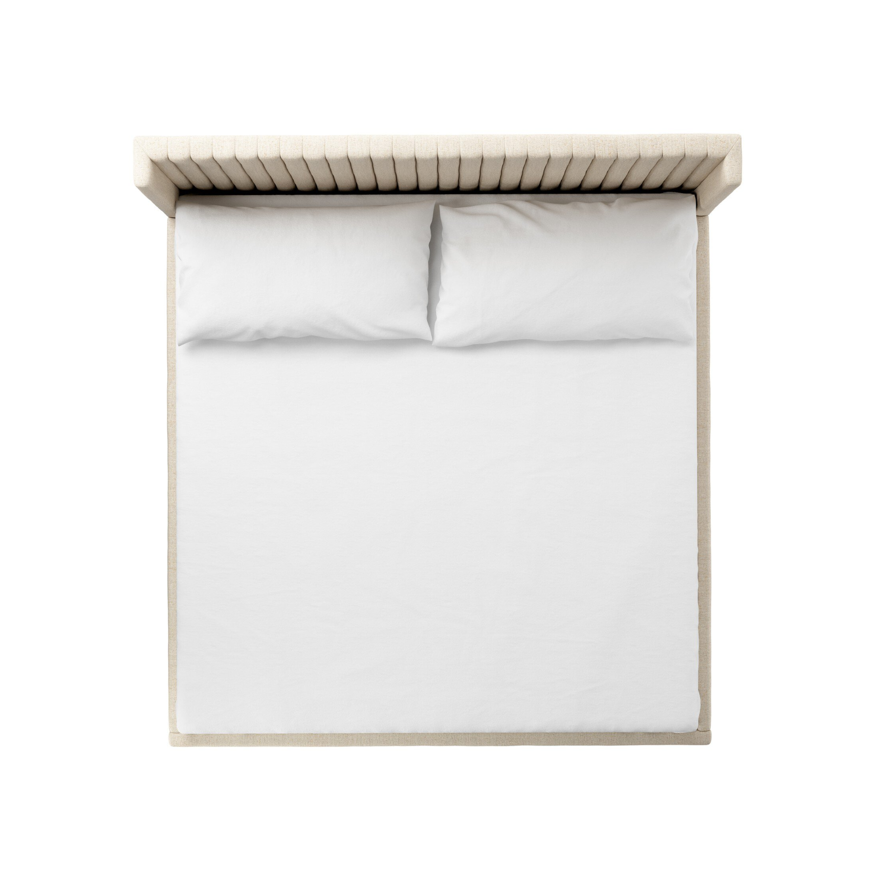The Maelle bed offers a contemporary take on bedroom design with its tall, vertical-channeled headboard and cream performance fabric upholstery. The parawood plinth base provides stability and durability, while the performance fabric offers long-lasting comfort and resistance to spills, stains, and wear. Experience modern sophistication and practicality with the Maelle bed.