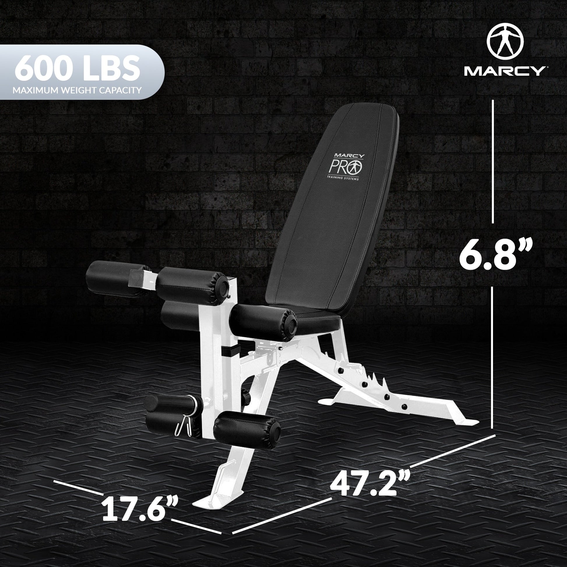 If you're looking to add versatility and reliable durability to your home gym or workout routines, then the Multipurpose Adjustable Weight Bench from Marcy is exactly what you've been looking for.The personal weight bench is well-suited for home gym setups and can give you the means to add variety to your current workout routine. Featuring a foam roller pad and a sawtooth pack pad design, this bench allows you to use it at an incline, decline, or flat position. With these multiple positions, you'll be able to pick up some dumbbells and complete chest flies, bicep curls, weighted push-ups, and more. Not only that, but this home gym equipment will adapt to fit most squat racks, half cages, and even more exercise machines. Constructed of top-grade, high-density foam, you'll be able to complete your workout in comfort.This workout equipment can hold up to 600 pounds, providing the stability and support needed for your workouts. Equipped with smooth caster wheels to conveniently maneuver the workout bench around your home gym allowing you to quickly reposition it for different exercises or to create space for other activities, the added mobility enhances the flexibility of your workout space.Get ready to take your work-from-home fitness to the next level with the Adjustable Weight Bench from Marcy. With durable construction and comfortable padding, it ensures a safe and comfortable workout experience.