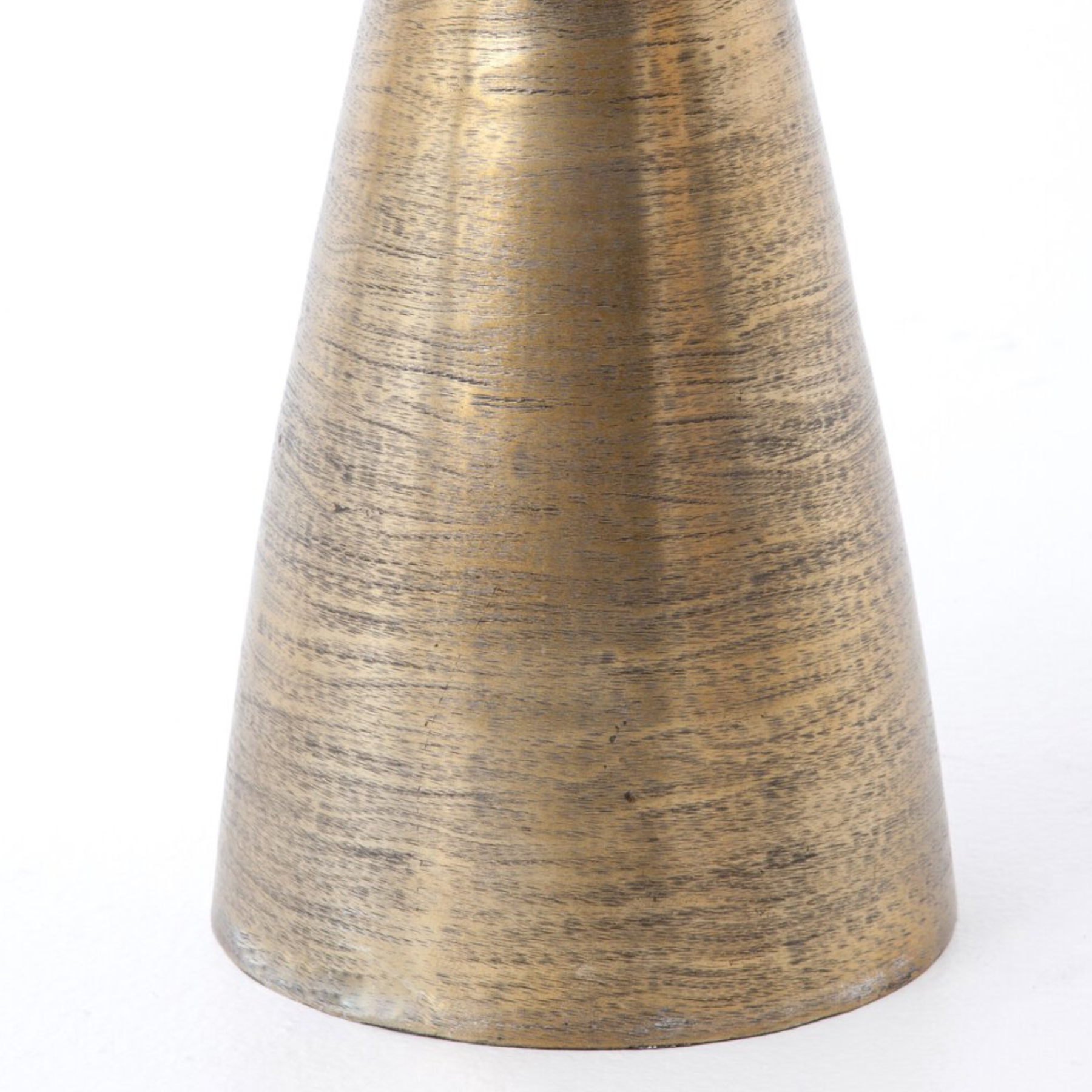 This vintage-inspired pedestal table features an elegant antiqued mirror top and brushed bronze finish, creating a bold yet modern statement piece. The Marlow Mod's metallic elements add a trendy pop to any space while its timeless design ensures lasting style in your home.