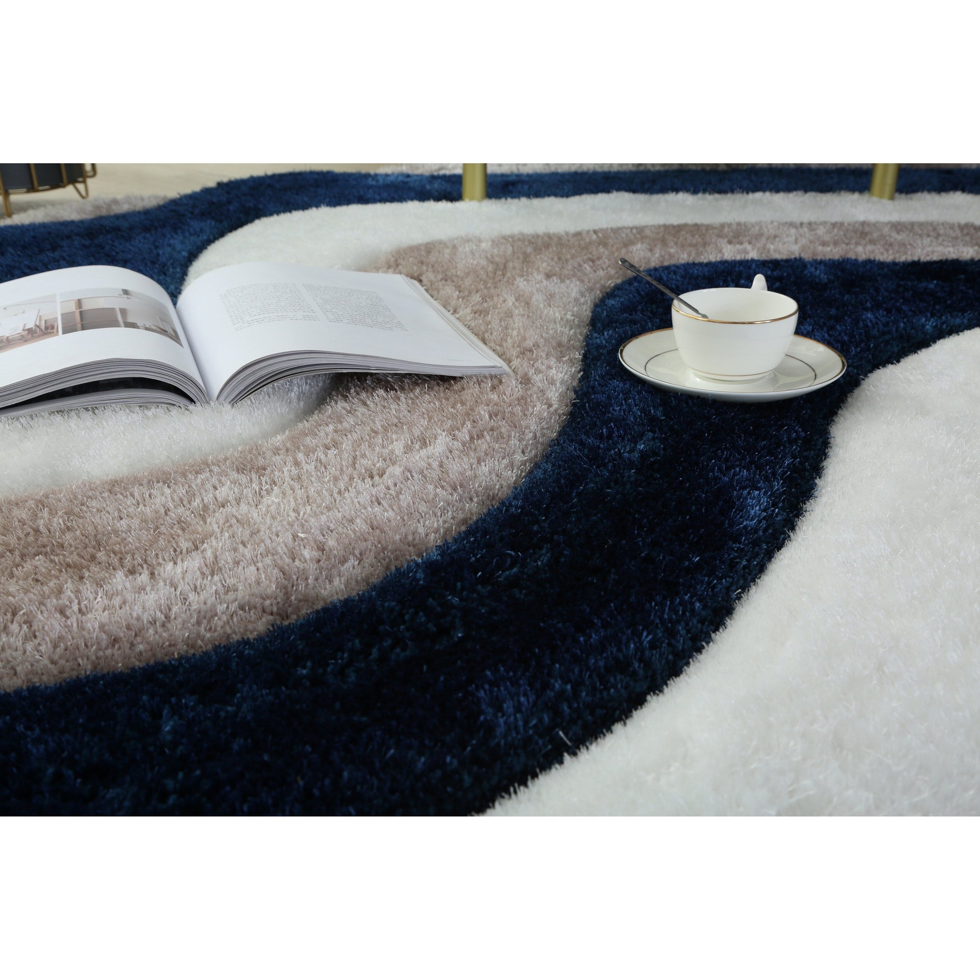 This contemporary designed area rug is constructed from 100% Polyester with a cotton backing. It features a machine made, power loom construction. This soft, shag rug will be the perfect enhancement to your living space.