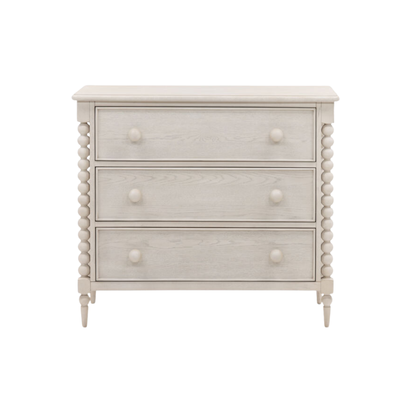 Elevate your bedroom with our Matilda Dresser. Crafted from durable rubber wood and topped with elegant oak veneer in a refreshing white wash finish. The playful design boasts ample storage and adds a fresh, bright touch to your space. Perfect as an accent piece or for organizing your essentials.