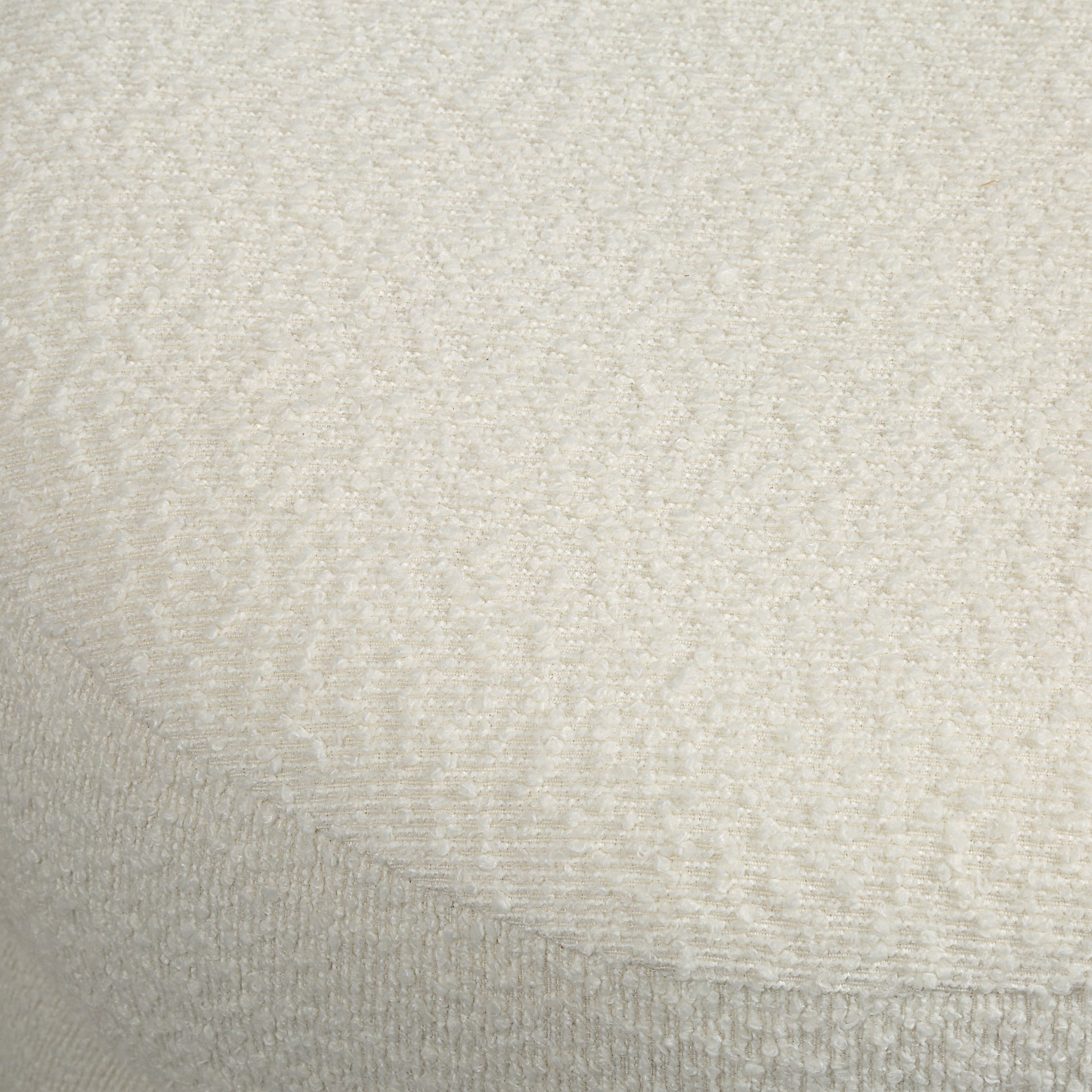 Rich in texture, this ivory boucle ottoman adds a contemporary touch to any modern space. Featuring rounded channel detailing, its plush, cushioned form rests on a light oak veneer base, blending comfort with sophisticated design. Ideal for Scandinavian or transitional interiors, it serves as a versatile accent to elevate your décor.