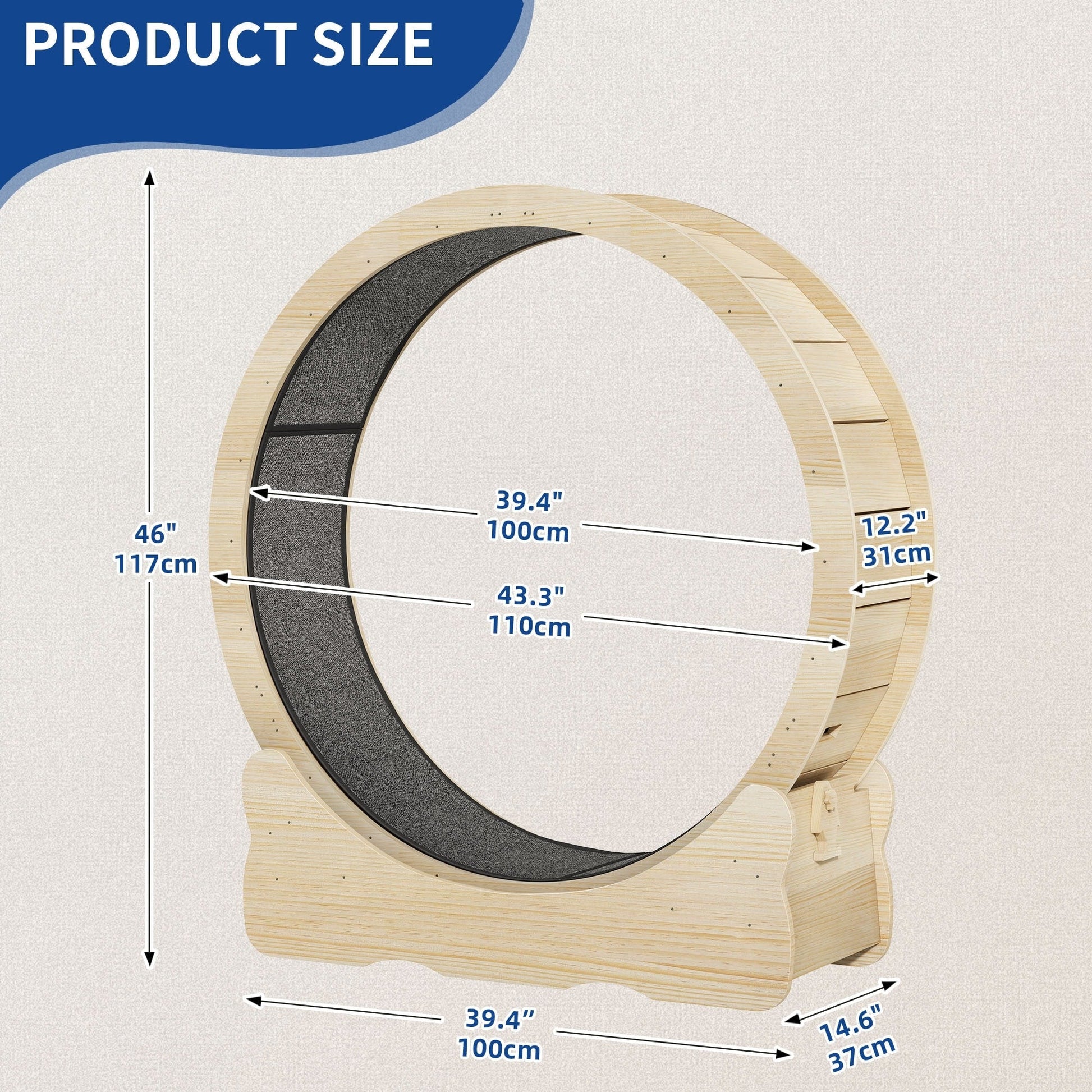 Moasis 43.3 inch Wood Large Cat Treadmill Exercise Running Wheel with Carpeted Runway