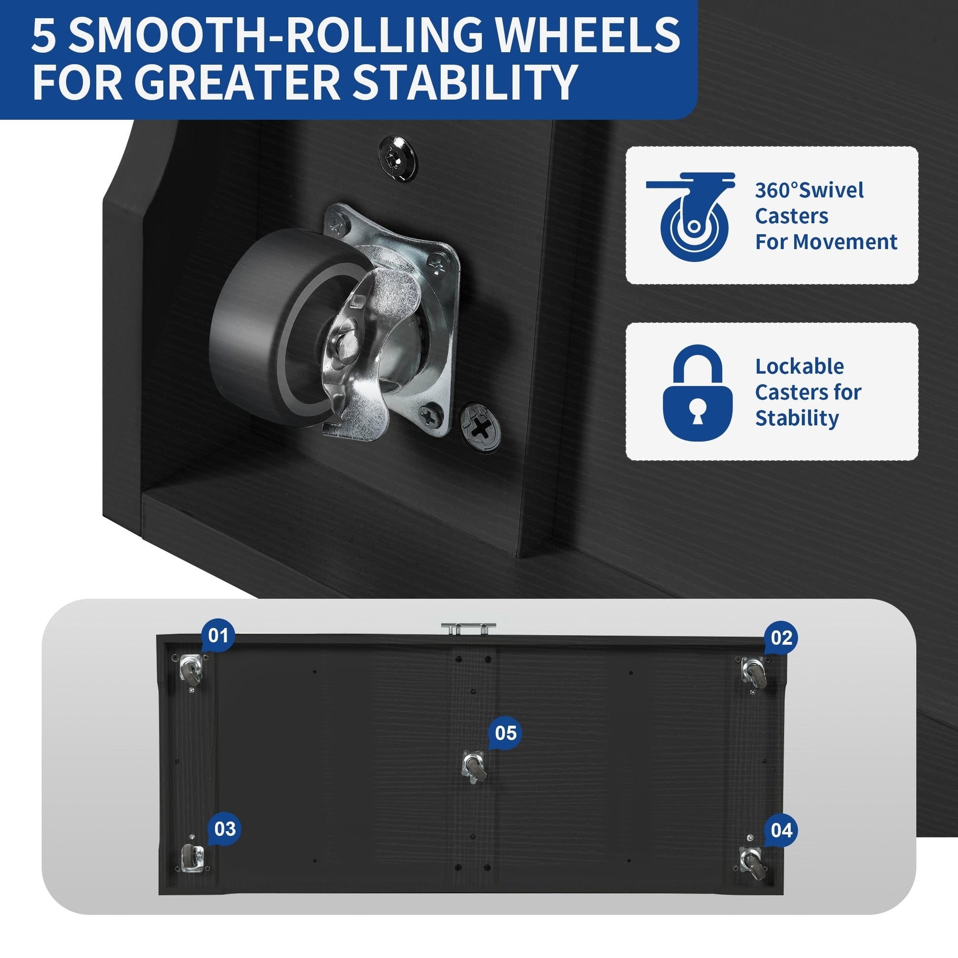 Check out our tilt-out trash can cabinet! This essential addition to your kitchen island helps keep your kitchen and dining area clean and fresh by securely storing a 10-gallon trash can (not included) to prevent odors. It provides ample storage space with 2 drawers for utensils, dinnerware, and stationery, and 3 side open shelves for spices. The adjustable shelf inside the cabinet can accommodate various kitchen items. This versatile cart comes with lockable rolling wheels for easy movement and locking for food prep or storage. Ideal for kitchens, dining rooms, and restaurants, this cabinet is made of safe CARB phase Ⅱ certified MDF boards. Assembly is simple with clear instructions.