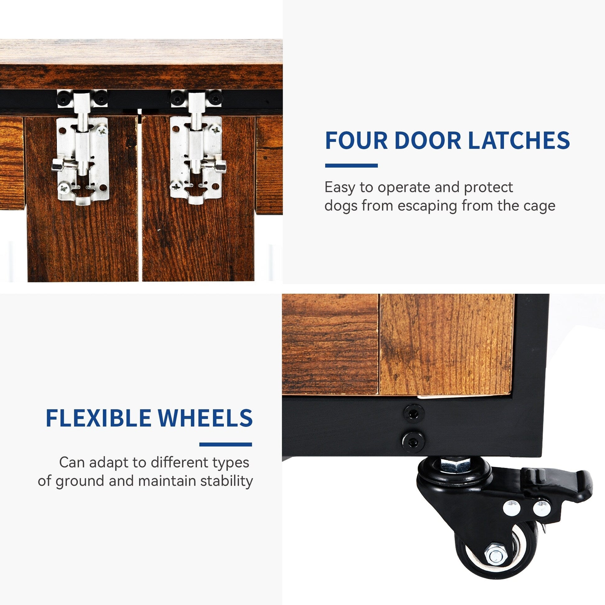 Are you still looking for a perfect furniture-style dog crate? This one is much better than our alternatives. A metal frame is sturdy and durable, applied P2-manufactured wood has less formaldehyde release for the safe use of your pet, and the reinforced surface makes it more scratch-resistant. It has an ingenious design on the side that allows you to put the food into bowls and swirl them inside without doors opening. What is more, 3 ways of entrances help you to get your doggy in and out per your likeness, and the 4 casters with brakes allow you to move it outside to enjoy the sunlight and fresh air. No doubt, it is the best one with greatest luxurious designs at the same price.