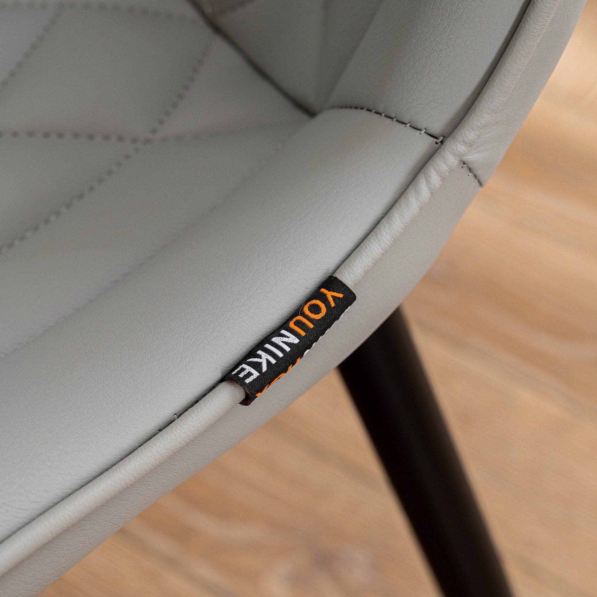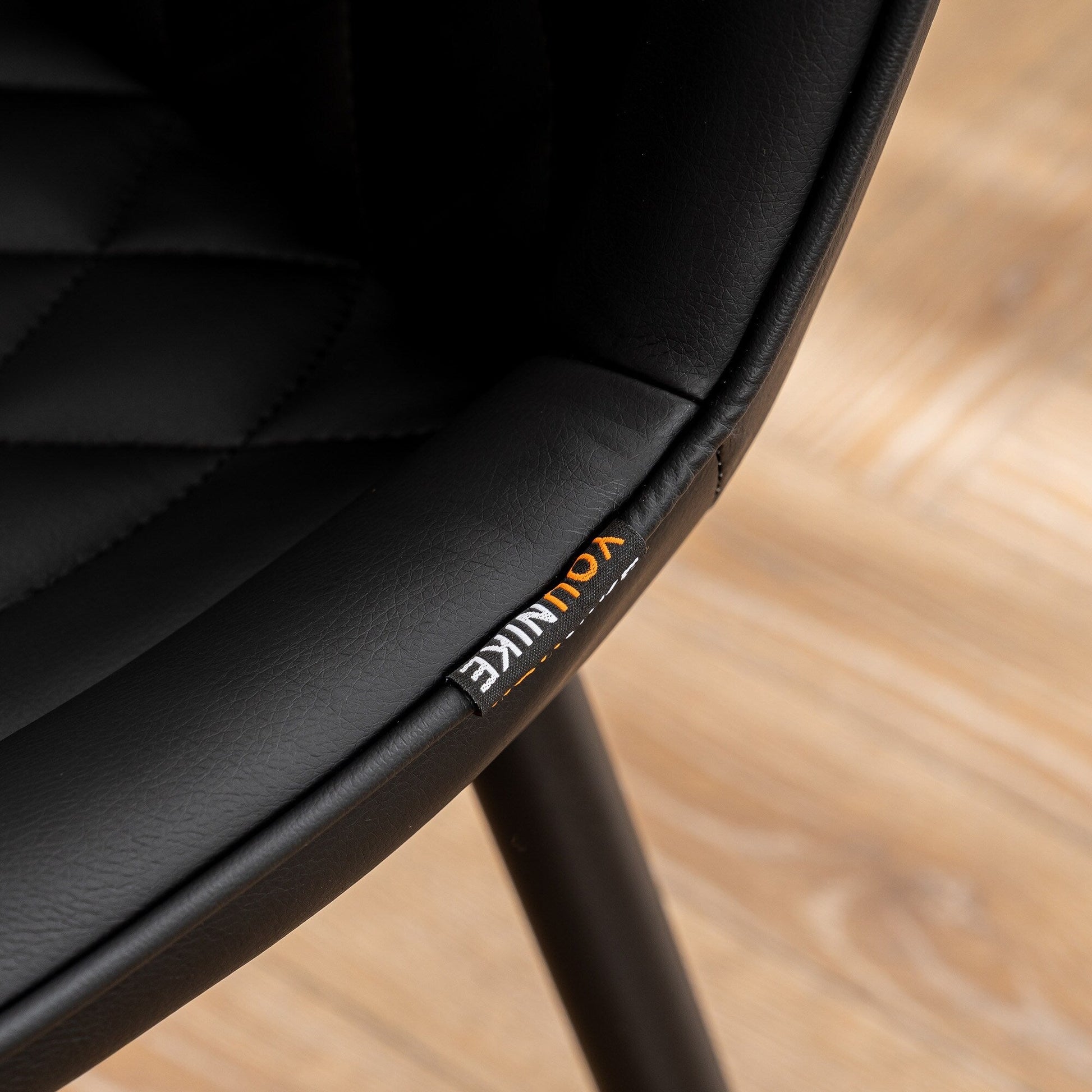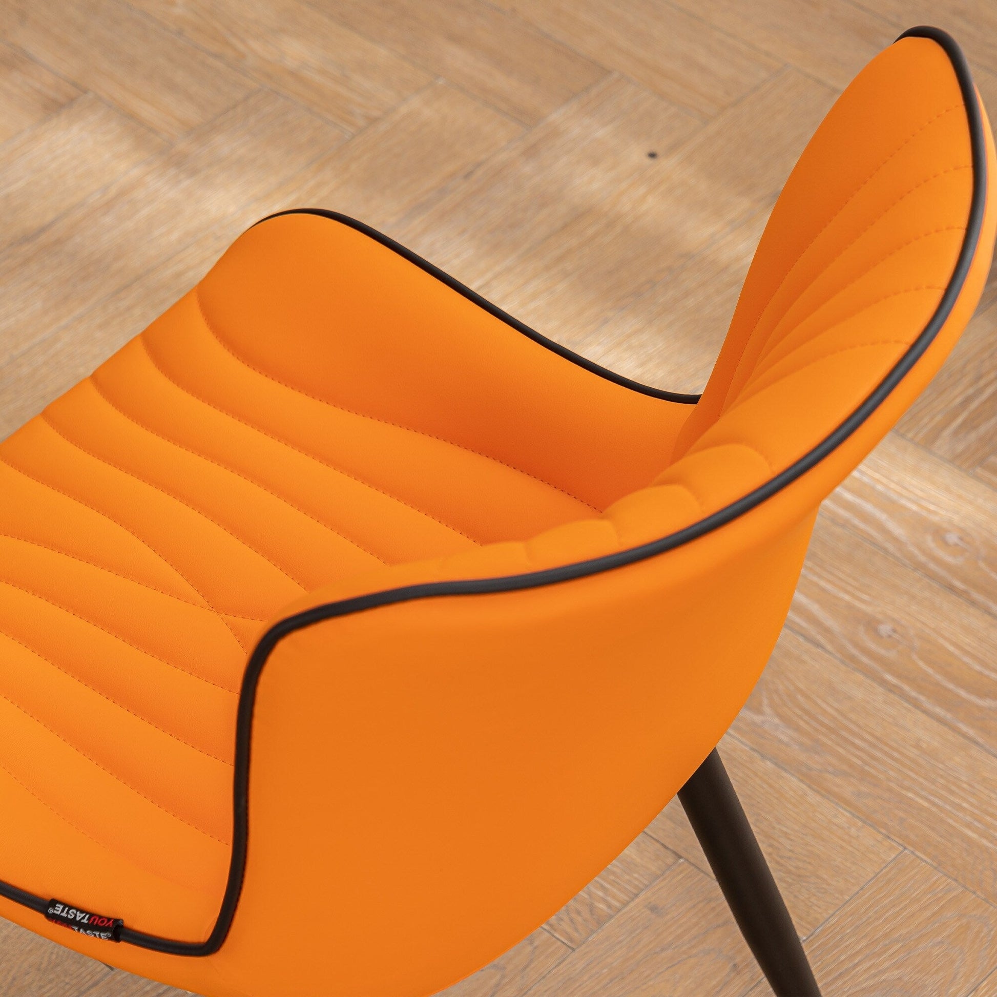 💞Surround your dining space with a set of dining chairs that not only bring your decor to life, but also conform to your body's curves for added comfort. Featuring lovely whales' tail stripe, leather upholstered seats and sturdy metal frames for durability, this dining chair's multi-materials accentuate the overall contemporary style. With no arms, our sophisticated dining chairs can be easily nestled into table voids to save space and are the perfect balance of stunning style and convenient functionality. These kitchen dining room chairs are versatile and suitable for a variety of settings, including dining rooms, kitchens, living rooms, guest rooms, waiting rooms and even vacation homes. They can be used as cozy reading chairs, comfortable corner cushions, makeup chairs, lounge chairs etc.