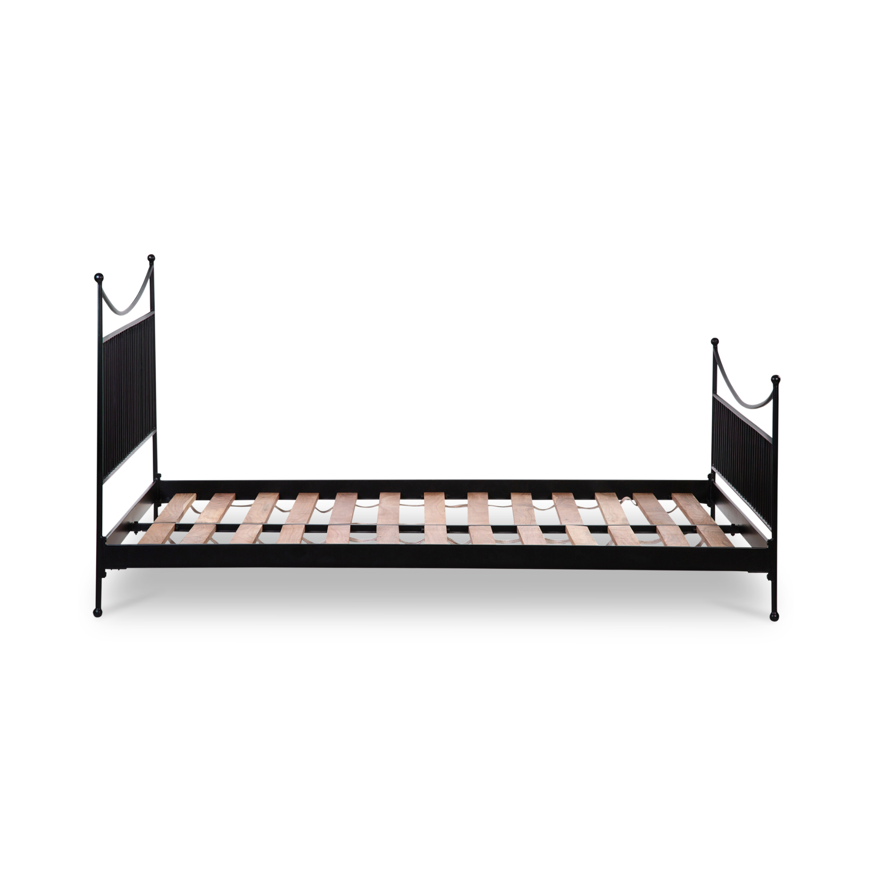 Experience the perfect blend of strength and beauty with our Moira Bed. Inspired by classic architecture, this bed features delicate curves and finial detailing. The traditional slatting on the headboard and footboard provides texture and depth, while the fusion of metal and softer materials creates a unique and elegant design. Upgrade your bedroom with the Moira Bed today!