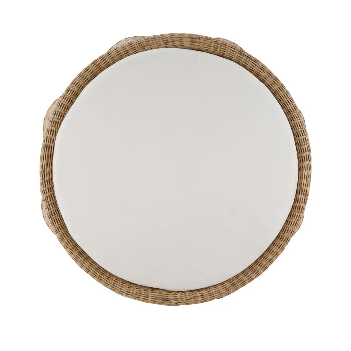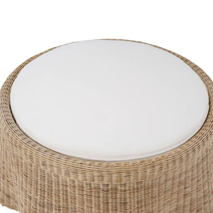 Elevate your living space with the Nelson Ottoman. Its unique touch of nature adds a cozy yet modern feel. The curved and rounded design, combined with natural rattan and white performance fabric, creates a charming addition to any room. Upgrade your relaxation game with this stylish ottoman.