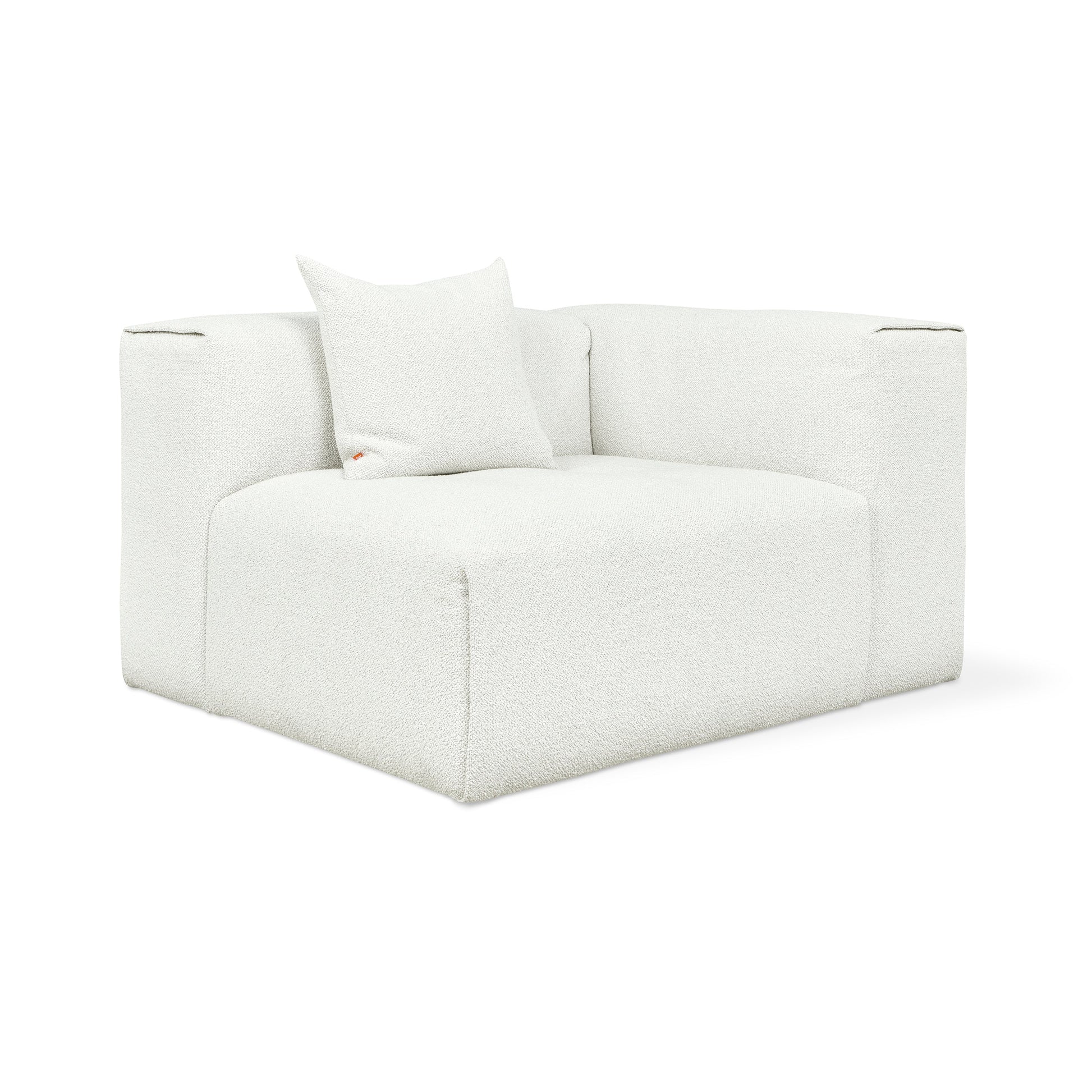 With plush comfort and a sophisticated, structured shape, our innovative Nest Modular Series invites you to sink in and stay awhile. The epitome of easy luxury, this versatile collection features five core components (Left Arm, Right Arm, Corner, Armless, and Ottoman) that offer near-endless configurations, allowing you to tailor your lounging experience to your evolving lifestyle. Each piece touts a plump low profile (courtesy of premium feather fill) encased in nubby bouclé fabric, with a Scandinavian-inspired modern shape that is versatile enough to hold court in a beach house, mountain escape, or boutique hotel lobby.