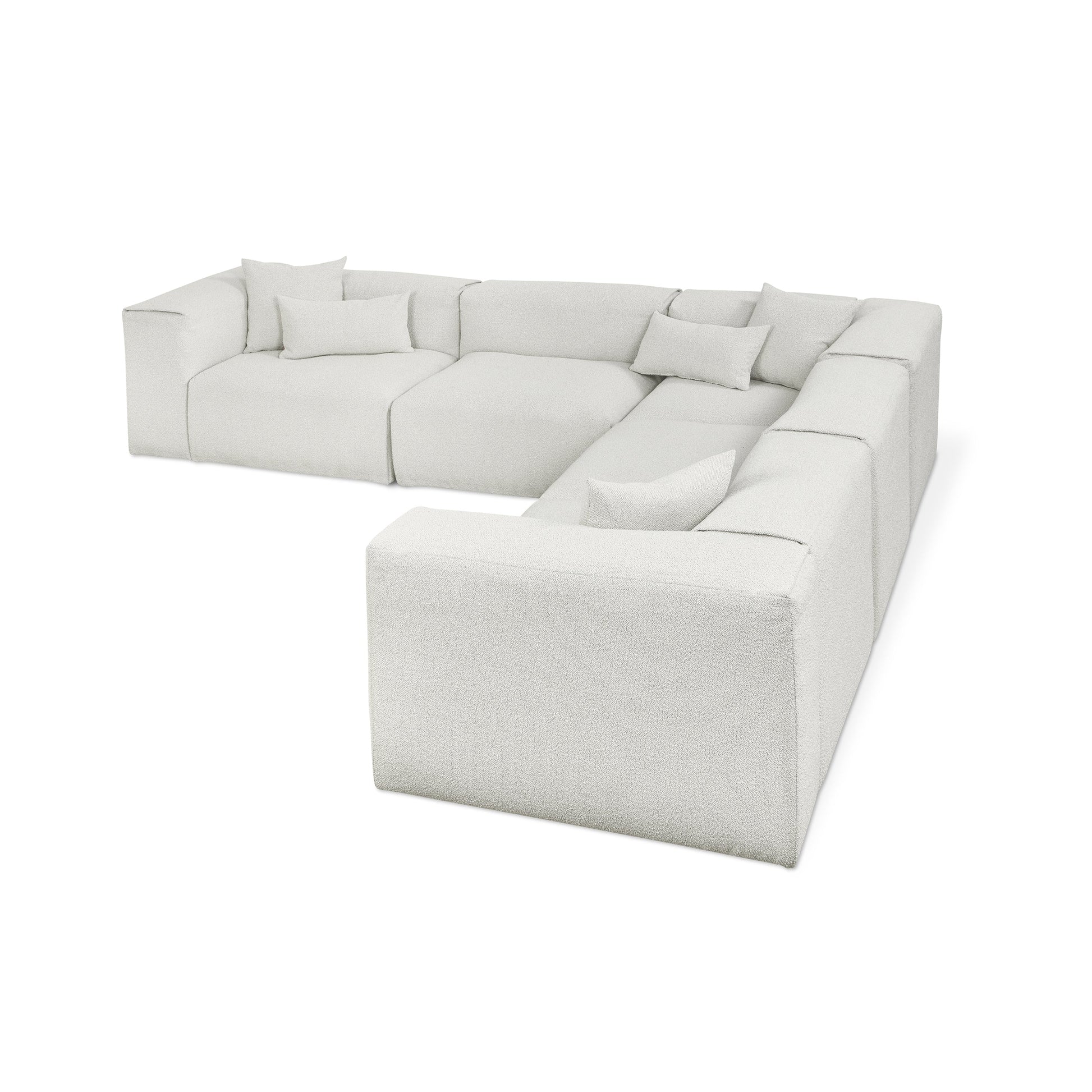 With plush comfort and a sophisticated, structured shape, our innovative Nest Modular Series invites you to sink in and stay awhile. The epitome of easy luxury, this versatile collection features five core components (Left Arm, Right Arm, Corner, Armless, and Ottoman) that offer near-endless configurations, allowing you to tailor your lounging experience to your evolving lifestyle. Each piece touts a plump low profile (courtesy of premium feather fill) encased in nubby bouclé fabric, with a Scandinavian-inspired modern shape that is versatile enough to hold court in a beach house, mountain escape, or boutique hotel lobby.