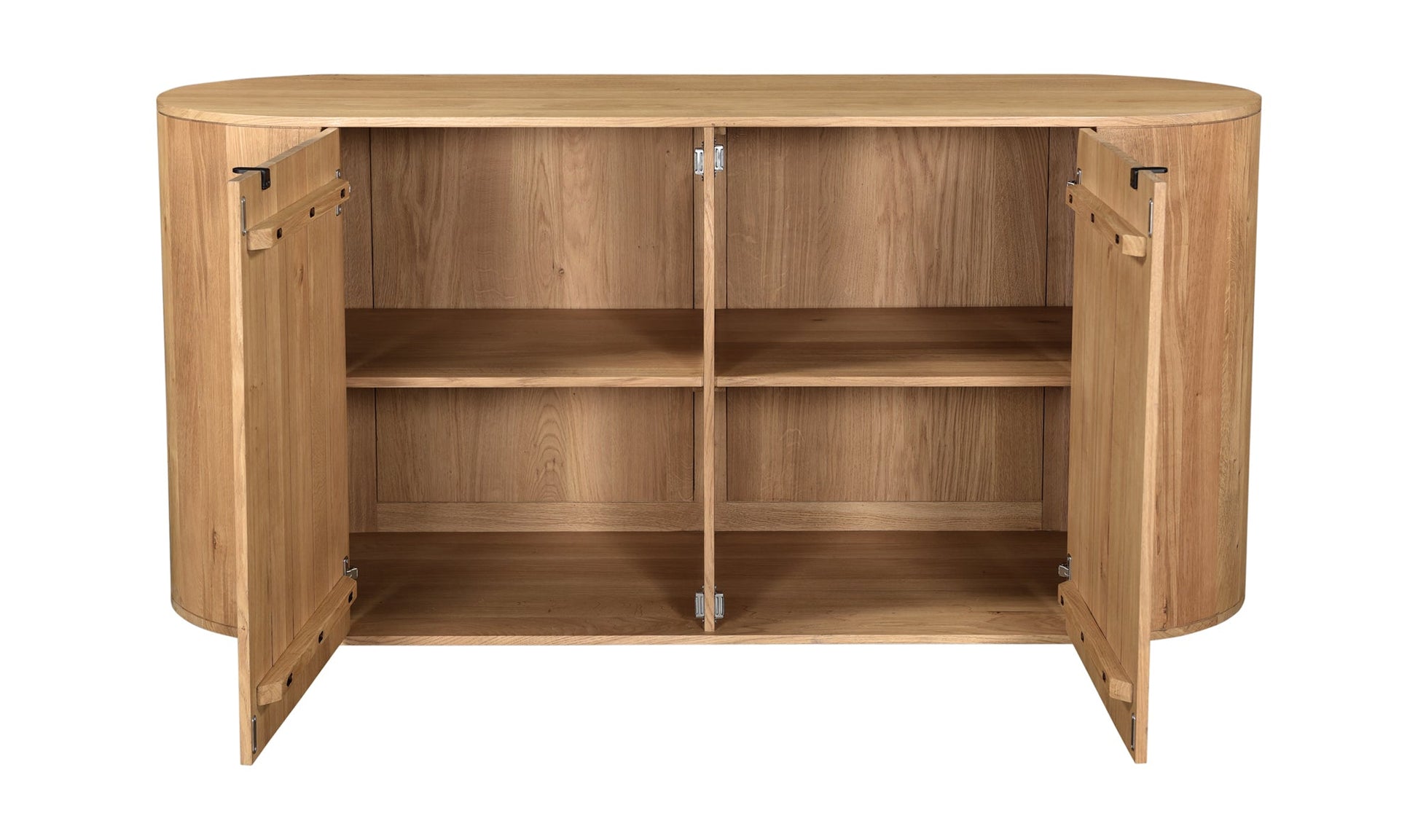 Meet Niko - The sideboard that is here to highlight the raw beauty of nature. Crafted from solid oak wood, this storage buffet has a natural finish and minimal design approach. The barn-style doors, spacious interior shelves, and magnetic door closure make this the perfect dining room storage solution.