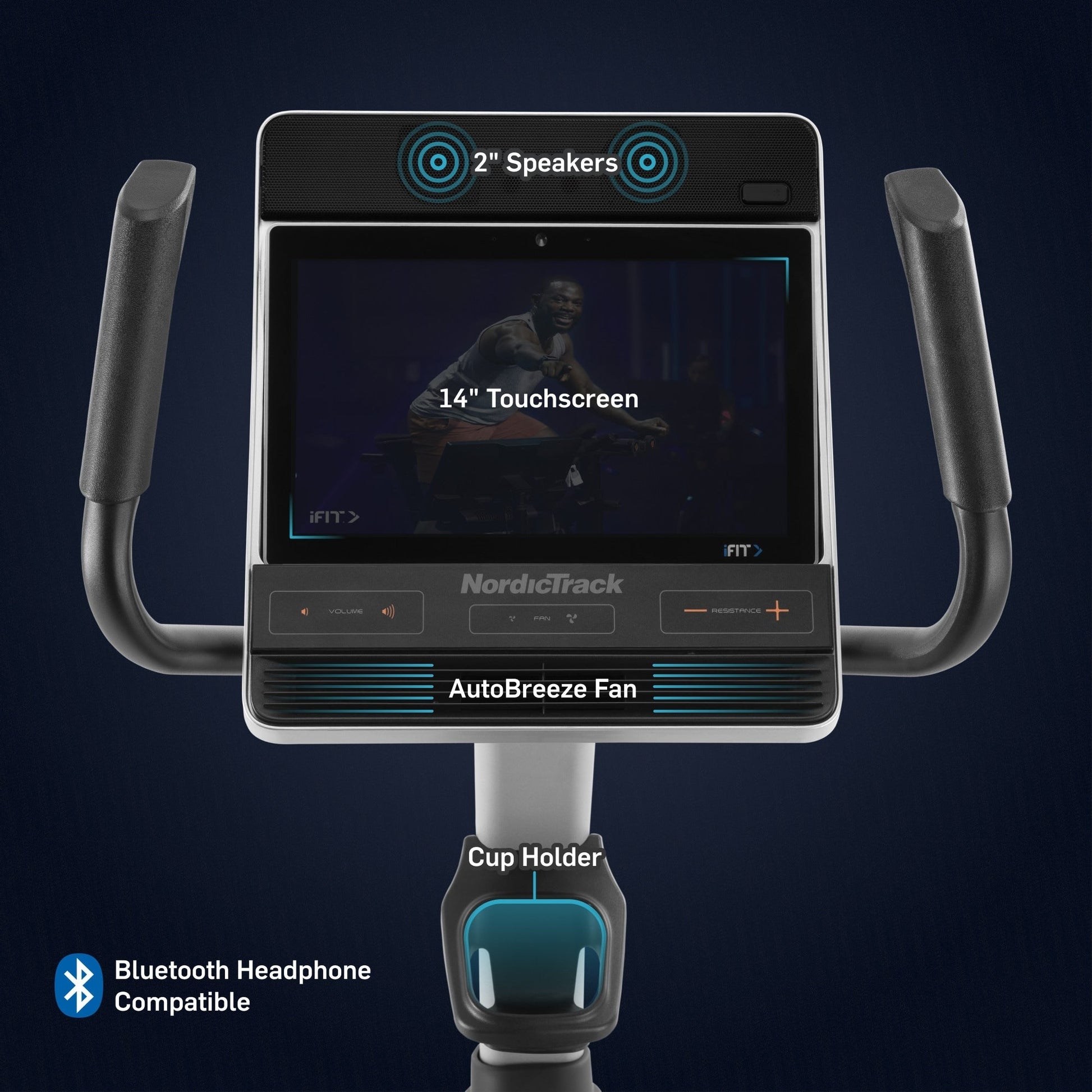 - 2' built-in speakers to enjoy clear audio of your trainer, their environment, and music during every workout.