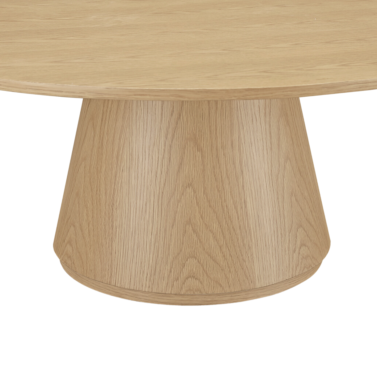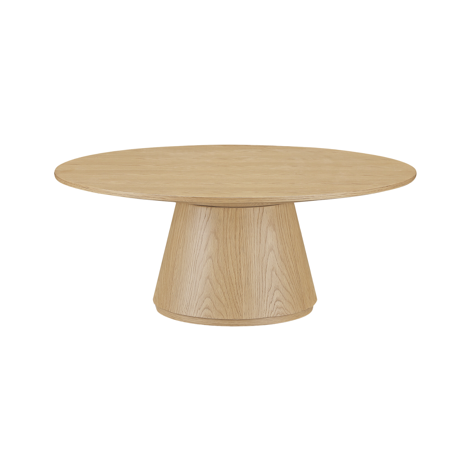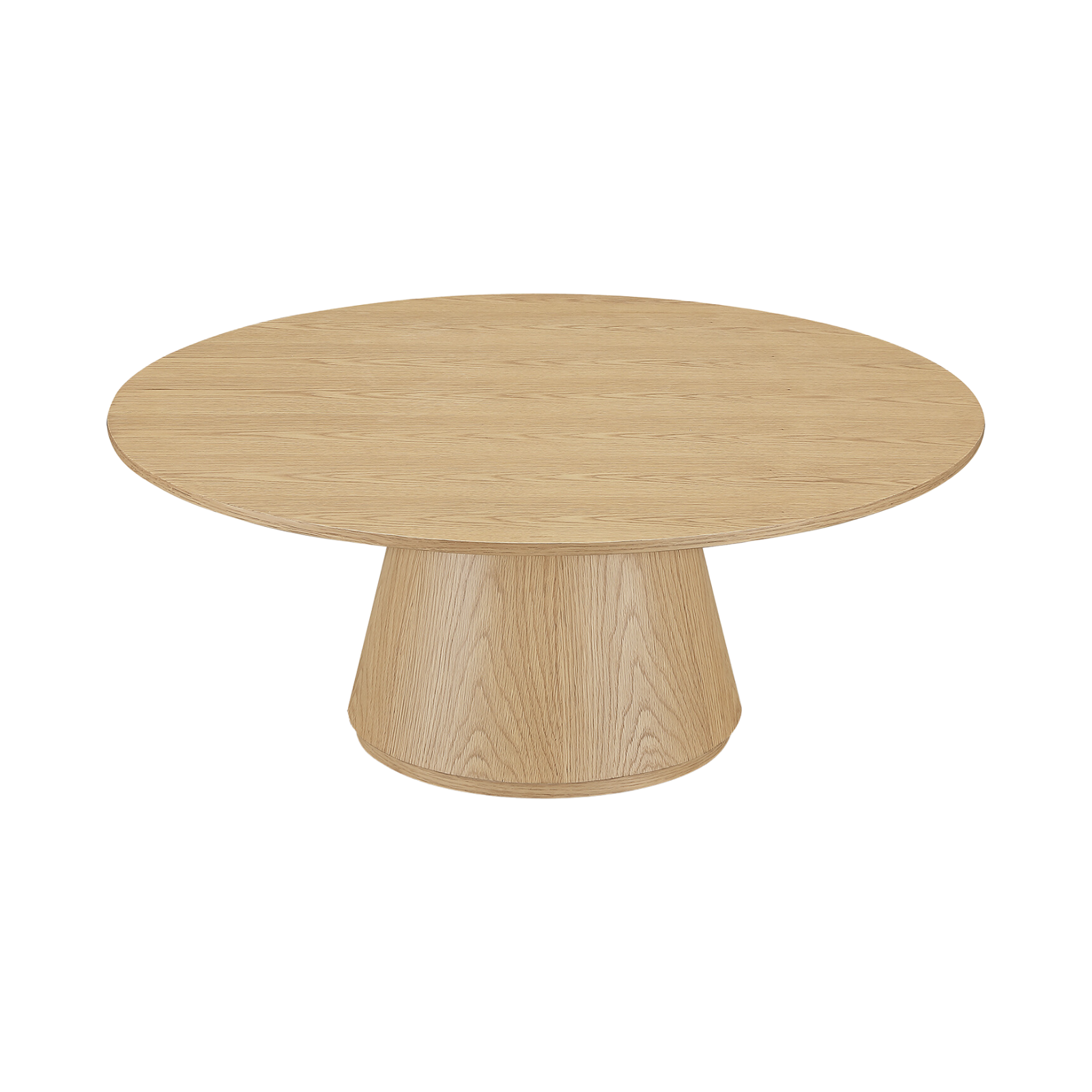 The Ortega Coffee Table adds a sophisticated, modern touch to any space. Featuring an oak wood veneer construction, it has a round top and tapered base to blend beautifully into your décor. The sleek top and warm aesthetic make it a timeless piece to complement any style.