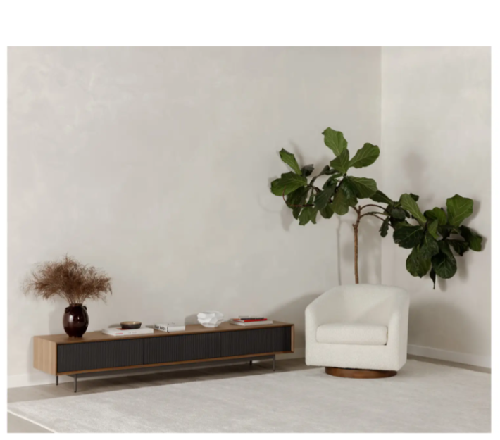 Light and cheerful. Calm and relaxed. The Oscar swivel chair is a cloud of comfort that brings airy energy and convenience into your living room with its 360° swivel, floating base design. Idyllic for a reading nook or as an accent chair, the Oscar creates a chic retreat with vegan shearling upholstery that looks fresh and feels cozy.