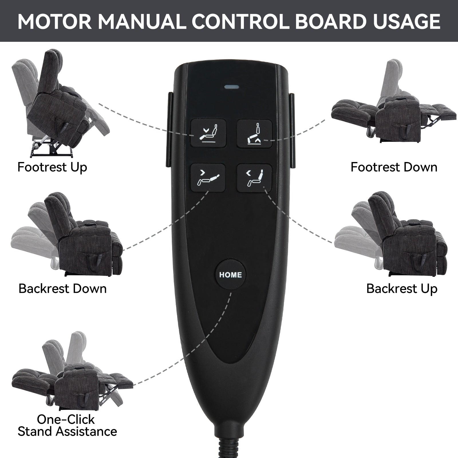 • Power Lift Recliner with Dual Motor: This chair is equipped with a dual-motor system, allowing independent control of the backrest and footrest. With a simple press of the power remote, you can recline the chair close to 180 degrees or activate the lift function, which smoothly and silently assists in helping users stand up. Ideal for seniors, individuals with leg or back balance issues, or those recovering from surgery.