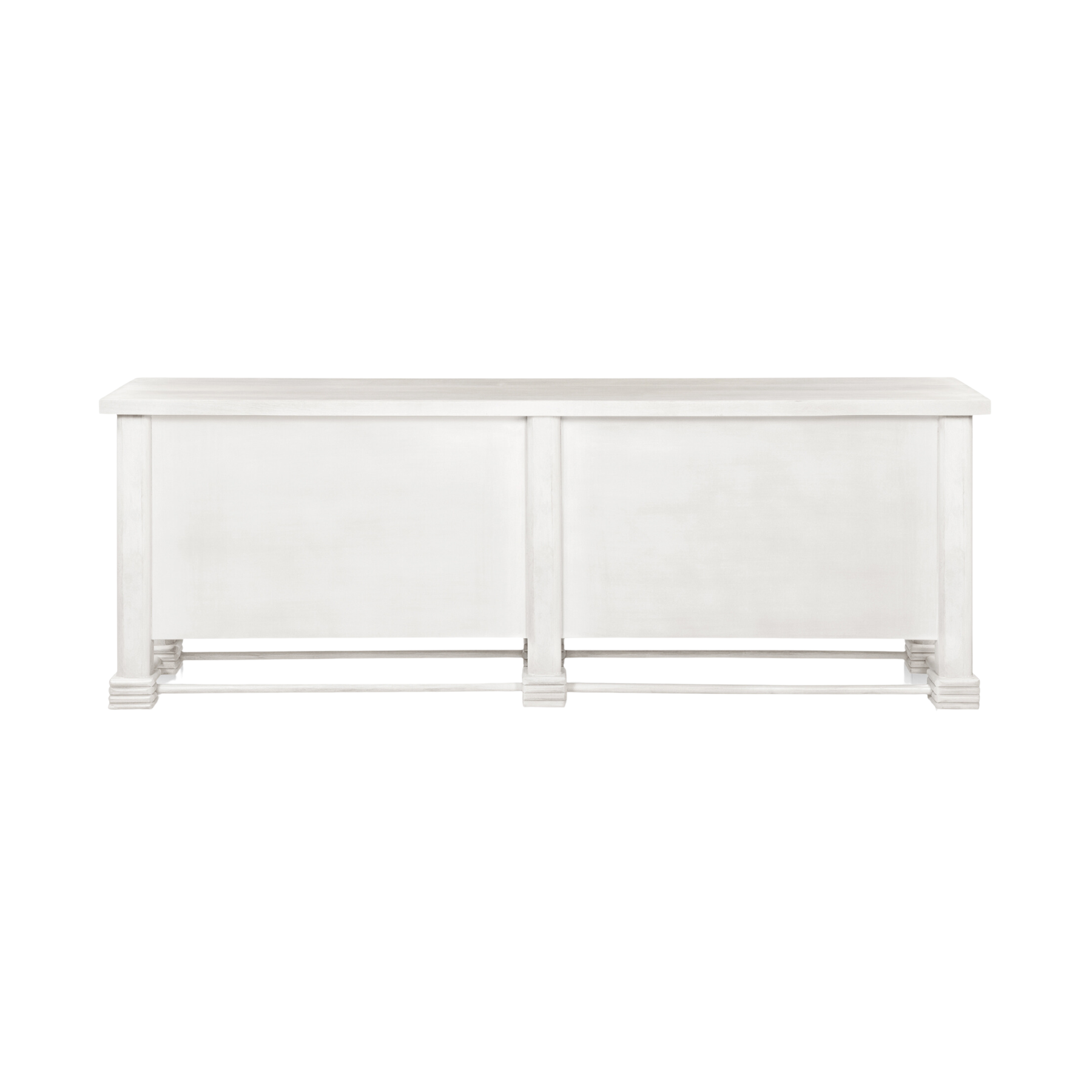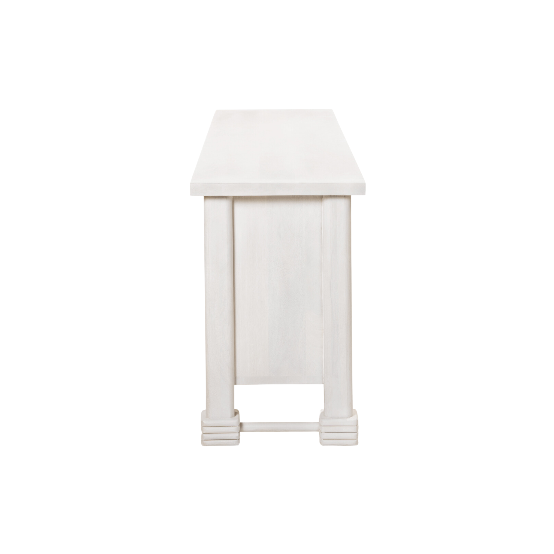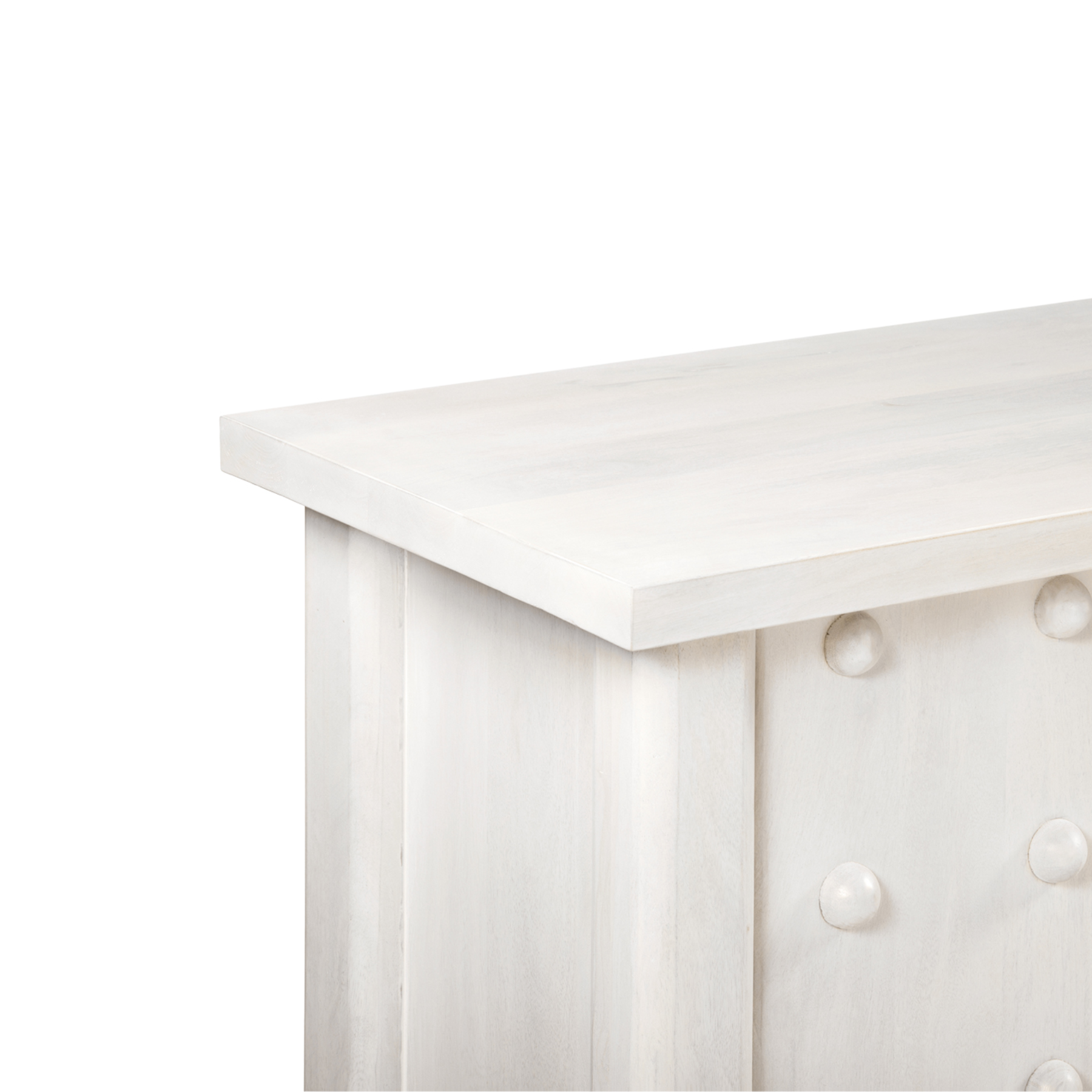 Experience the elegance of the French countryside with the Philippa Sideboard. Crafted from mango wood with a whitewash finish, this piece boasts French-inspired elements and intricate circular motifs that enhance its oversized, chunky design. The carved detail feet with stretcher bars not only add visual appeal but also provide sturdy support. Internal drawers offer ample storage for your belongings.