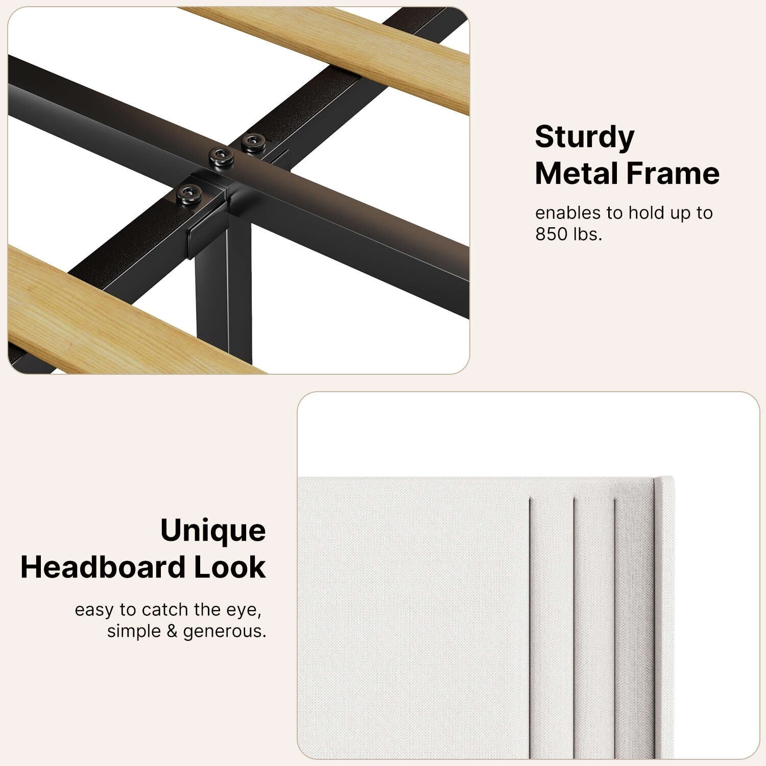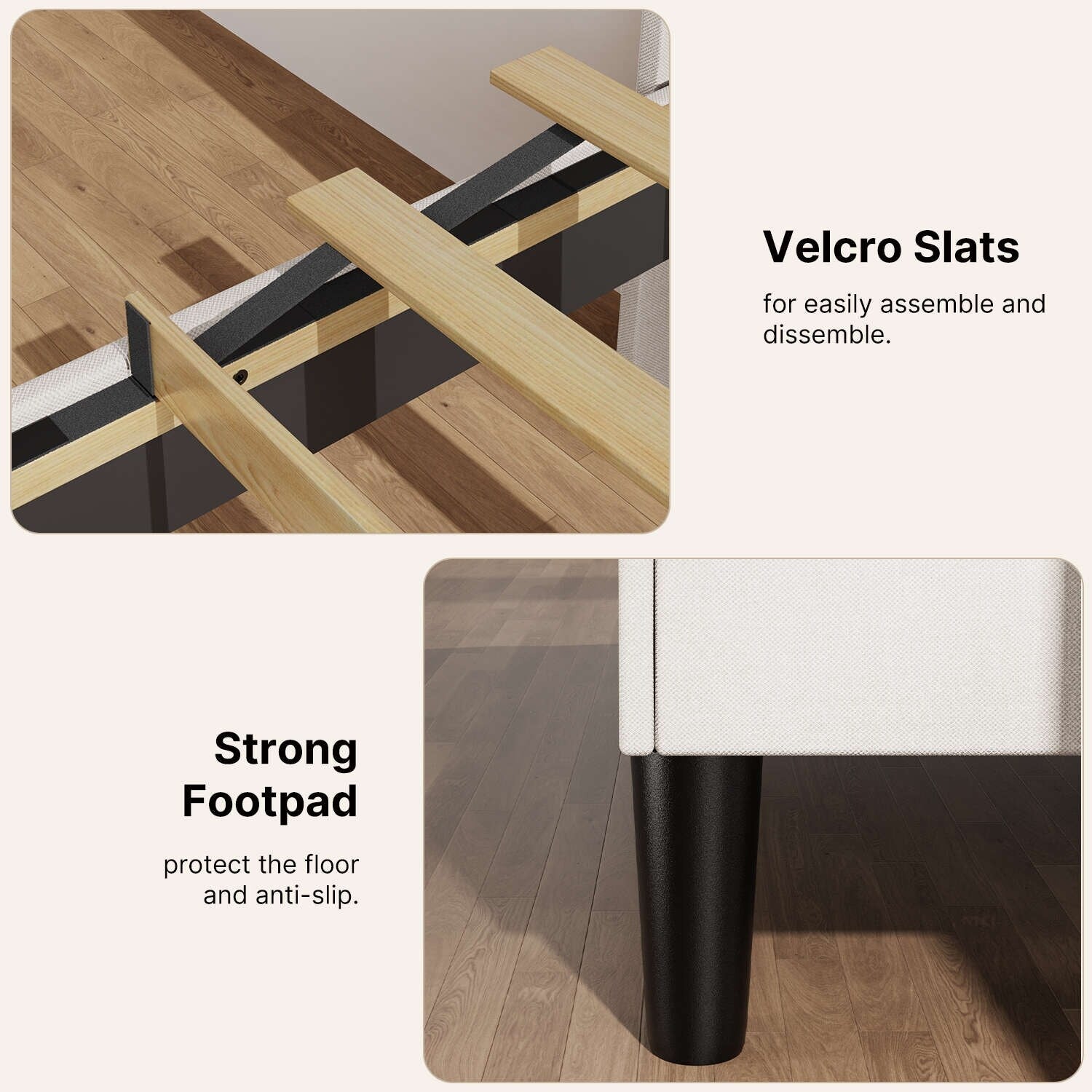 - Durable Construction: Built with a solid frame, this upholstered bed offers reliable support for your mattress without the need for a box spring. Its sturdy construction ensures long-lasting durability and comfort.