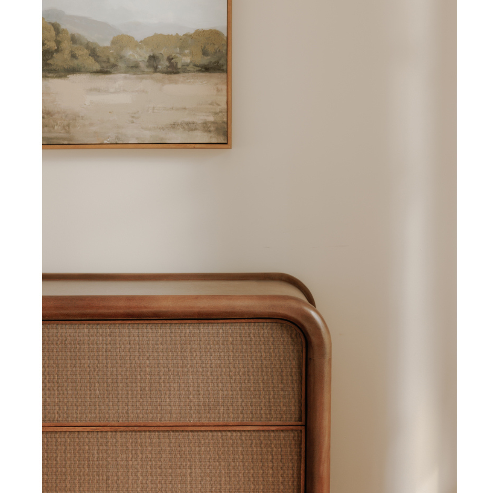 The Rawley Dresser can be used as a dresser, or even a sideboard to bring a stunning retro feel to any bedroom or living space. With its unique shape and rounded edges, you'll have the perfect addition to your home.