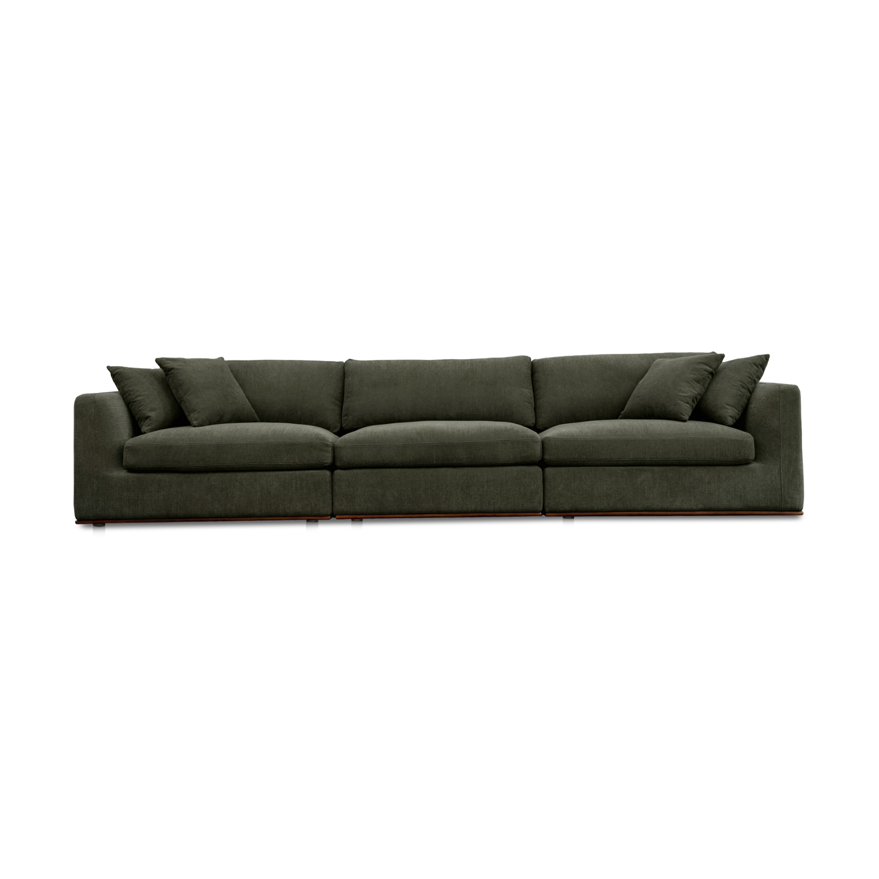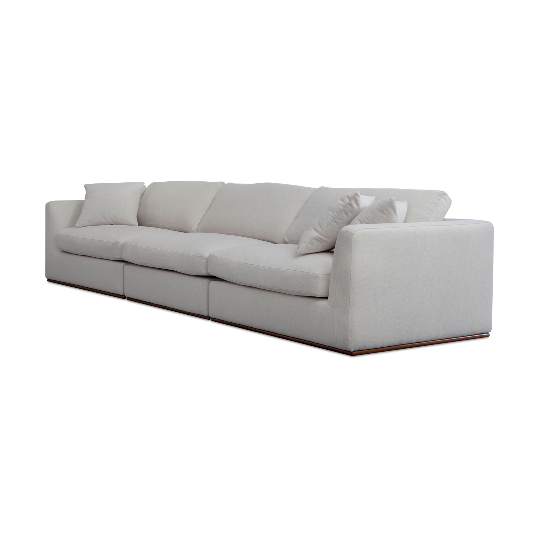 Introducing the Reina 136' Modular Sofa - your new go-to for ultimate comfort and style. With a plush 70% feather-fill topper and toss cushions, you'll sink into relaxation. The elegant silhouette and floating rubber wood base add a touch of sophistication, while the subtle wooden legs provide sturdy support. Comfort meets design in this modular masterpiece.