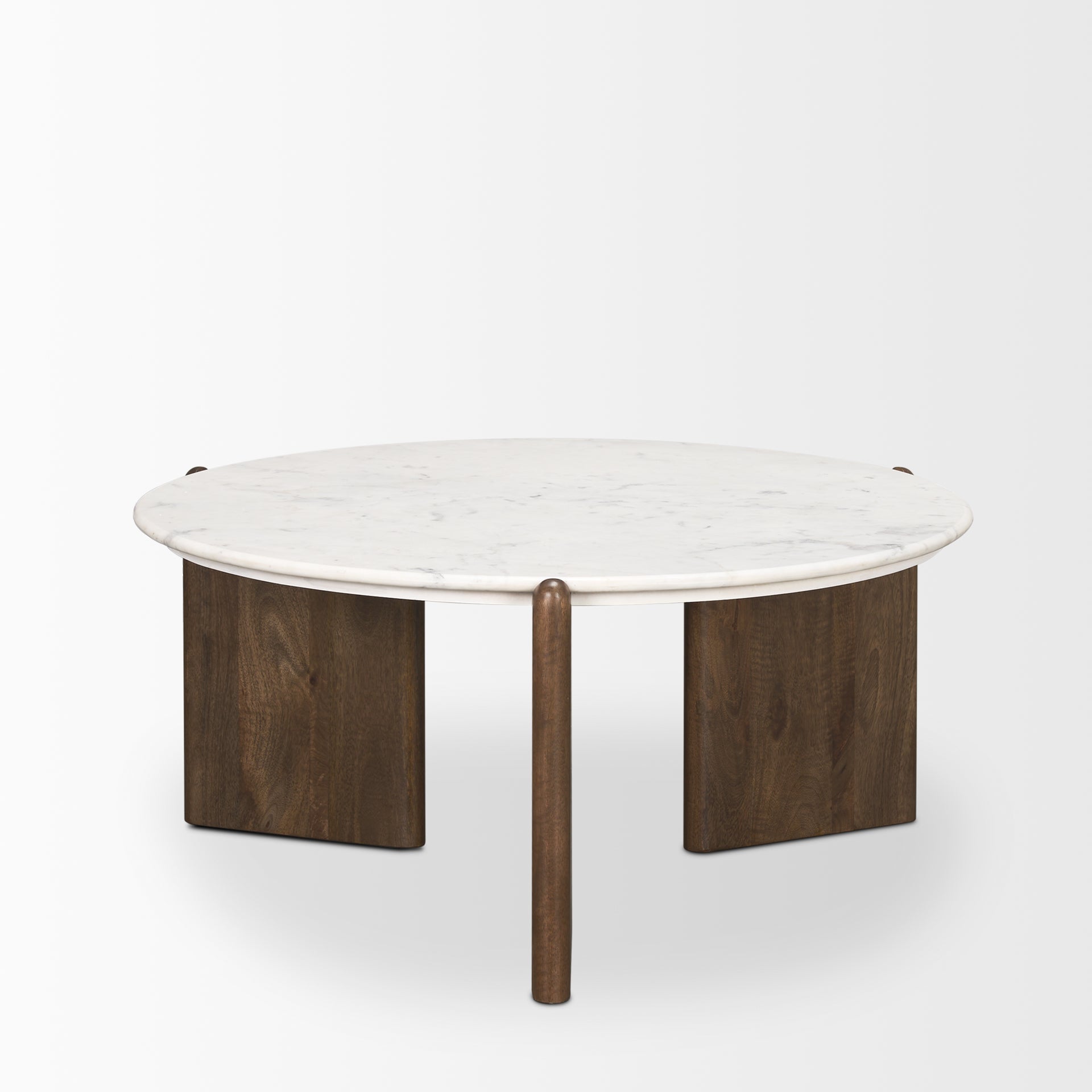 This sophisticated Remi Coffee Table will add a luxe touch to your living space with its solid mango wood legs, rich dark brown stain, and white marble top with grey veining. Its upscale, contemporary style sets it apart from other coffee tables.