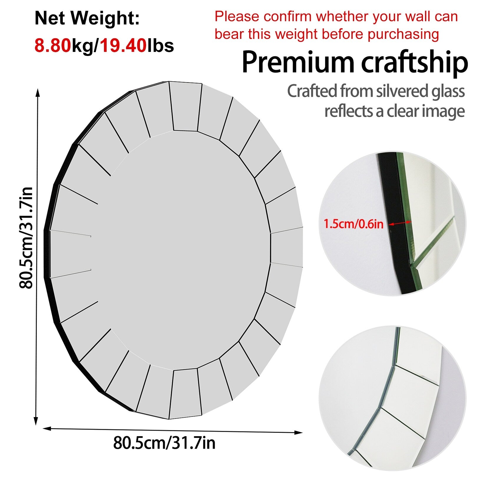 Make a striking statement in your home or office with this contemporary round accent mirror. You can adorn any prominent wall with this dazzling contemporary mirror and be sure to catch people's attention. Contemporary round sunburst style clear mirror.This accent mirror would undoubtedly brighten up any living space and is perfect if you're looking for that fresh modern look. A mirror sits within the surround, which is ideal for everyday use.