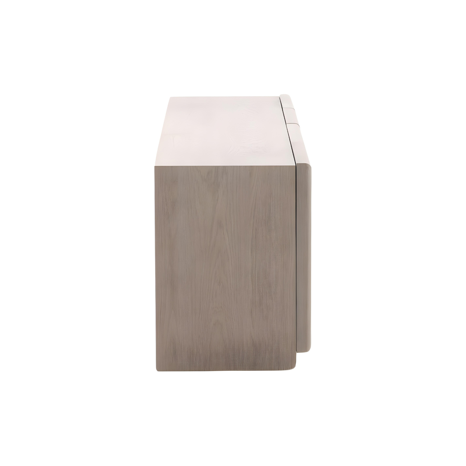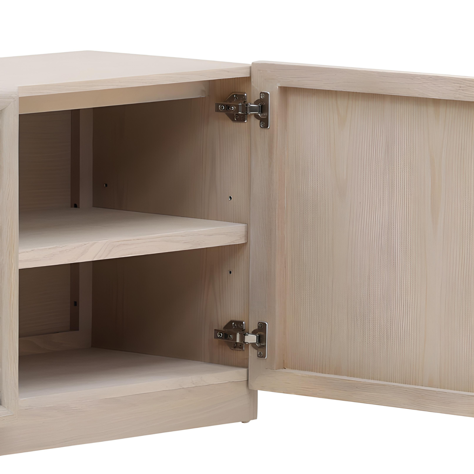 Elevate your dining experience with the Ryah Sideboard. Made from solid oak wood and featuring a sleek modern design, this grand piece offers ample storage with its long, light wash interior shelving. Upgrade your space with this elevated addition.
