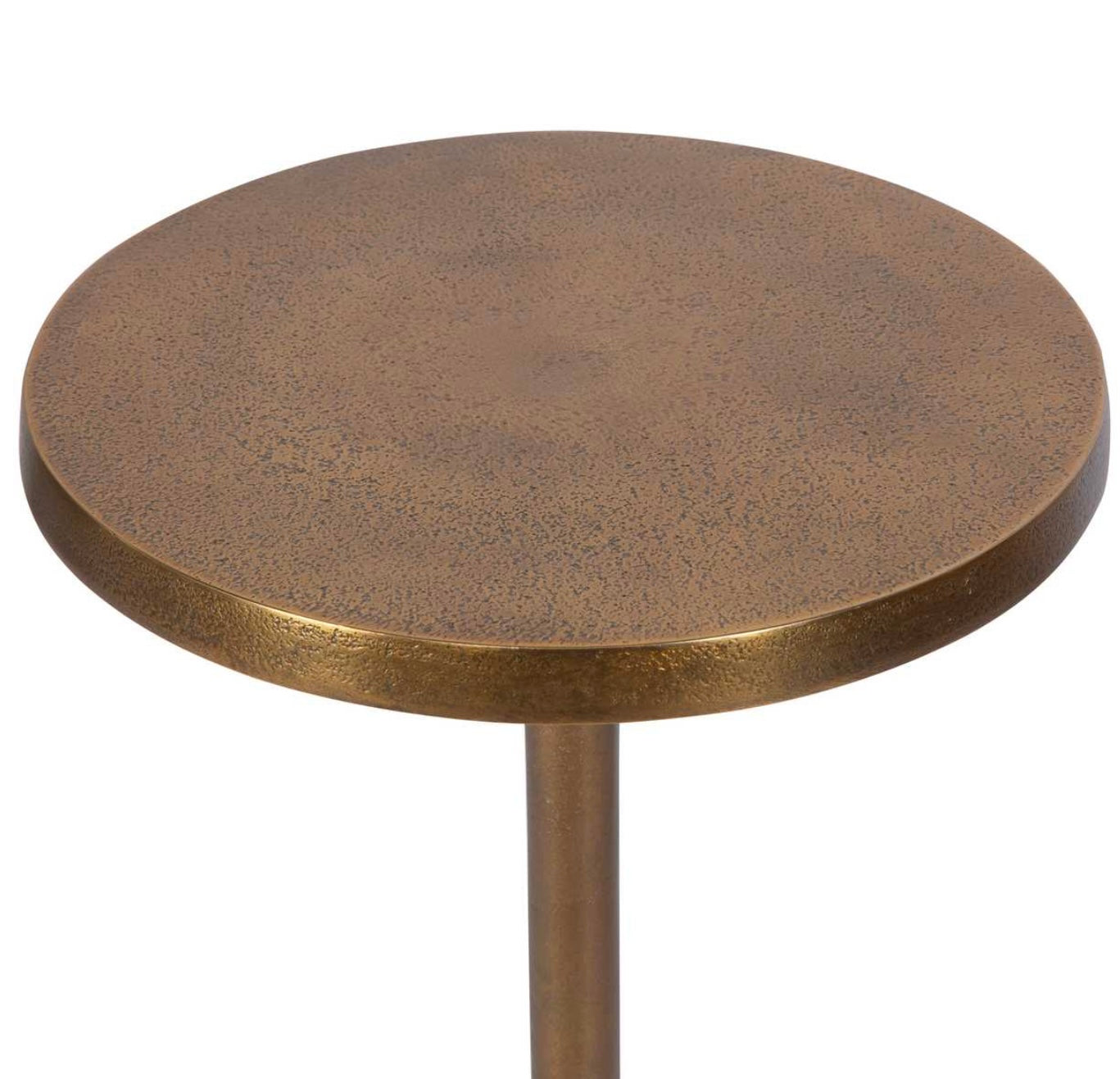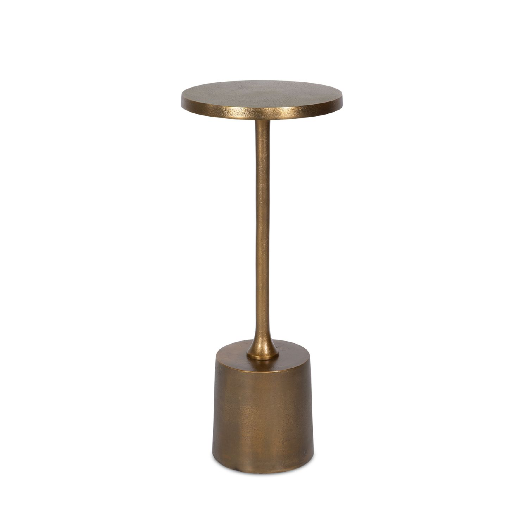 Minimalist in style with a chunky base, this solid aluminum drink table features a textured finish in antique gold.