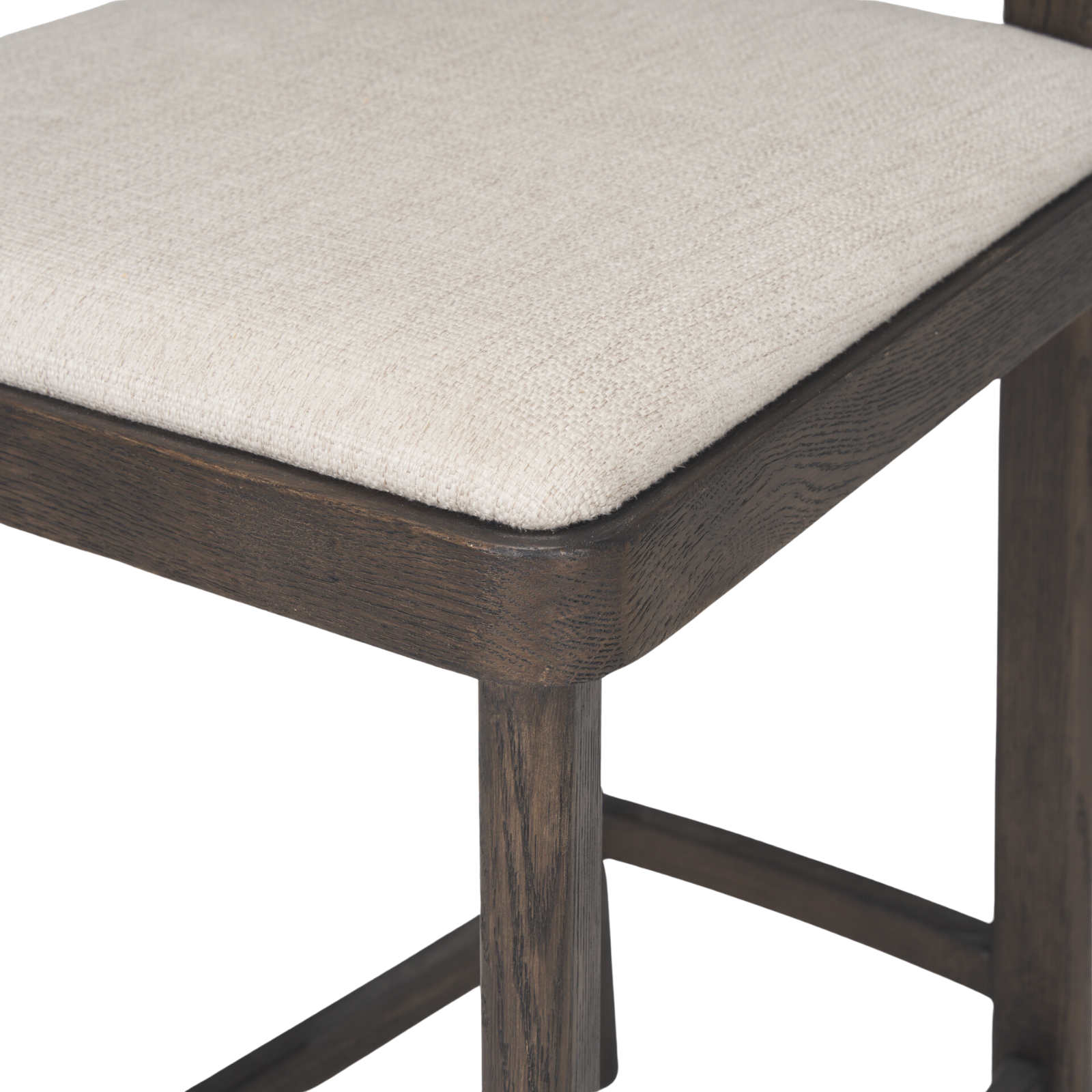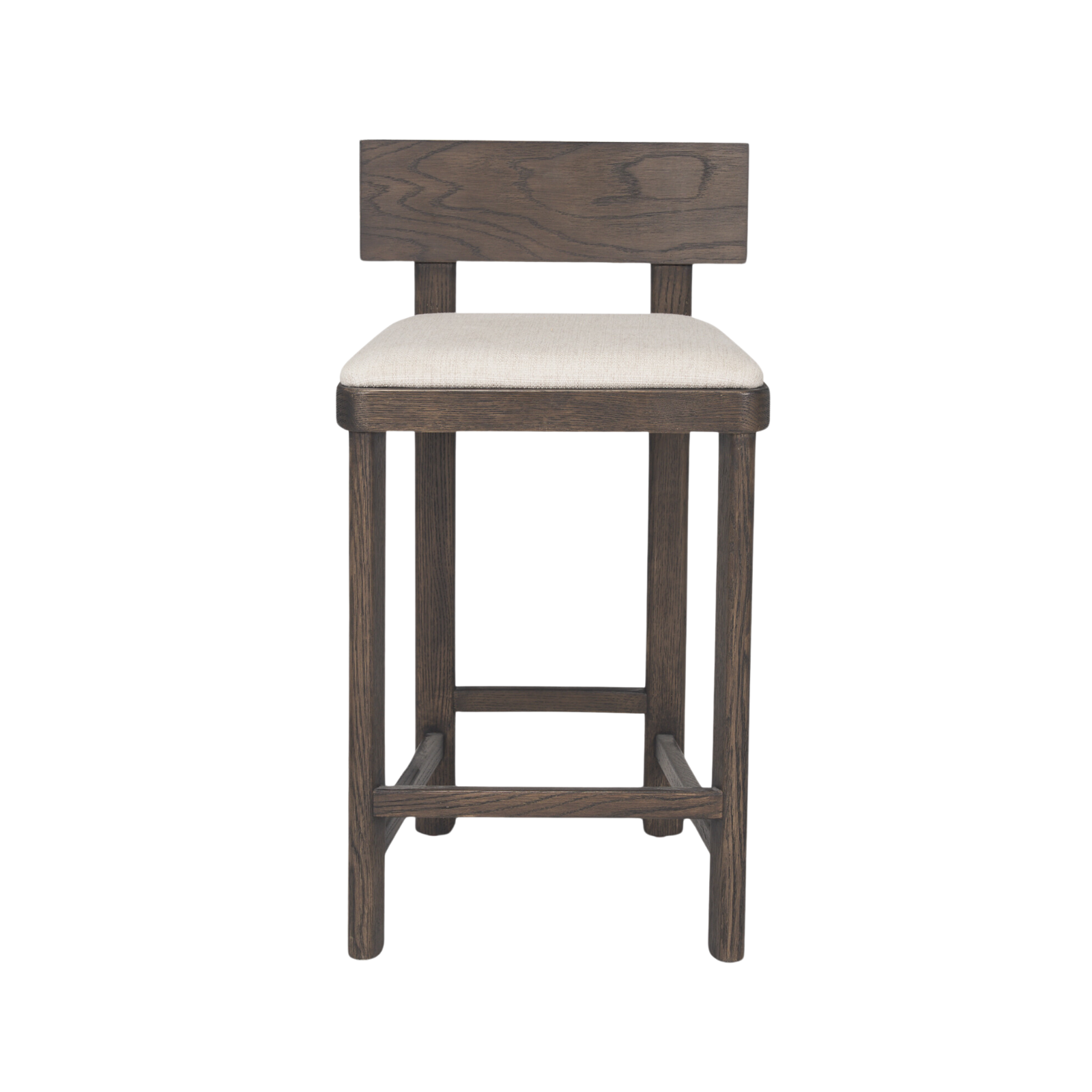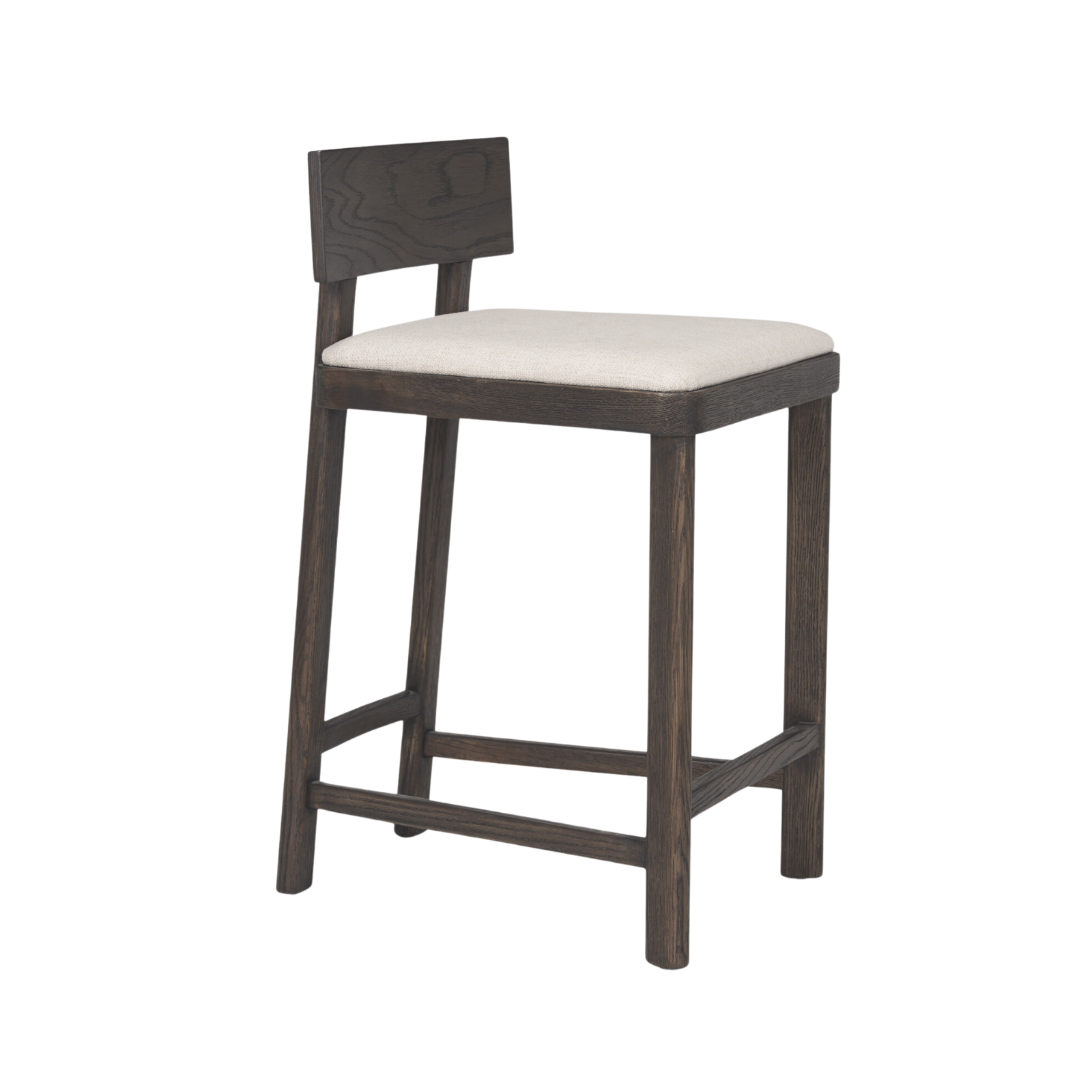 Introduce sophistication to your dining experience with Sekai Counter Stool. Featuring angled legs and a low backrest, this set of stools bring minimalist charm to your space. Made of solid Hackberry wood and stained with a rich dark brown, it adds sleek and visual dimension to any dining setting.